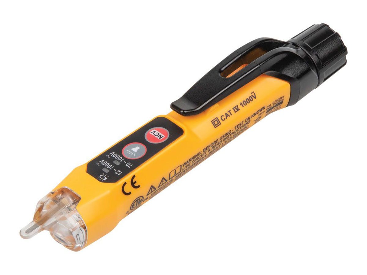 The Klein Tools NCVT-3P Voltage Tester with Flashlight is an AC voltage no-contact tester with a flashlight that can work together with or separately from the tester. Detects voltage from 12 - 1000V, this meter can fit in almost any pocket, and is perfect for tight spaces. Designed with safety certifications including waterproofing, dust-proofing, and a 2 meter drop resistance a priority, this voltage meter can endure extreme use on a variety of job sites.