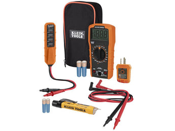 The Klein Tools MM320 Electrical Test Kit was designed to be used by contractor, electrical and utility professionals for a wide variety of tasks. Each meter or device that comes with this kit is used to test or measure AC and DC voltages commonly found in US residential homes and businesses. Whether testing AC currents, resistance, outlets or GFCI receptacles, the MM320 Kit can get the job done.