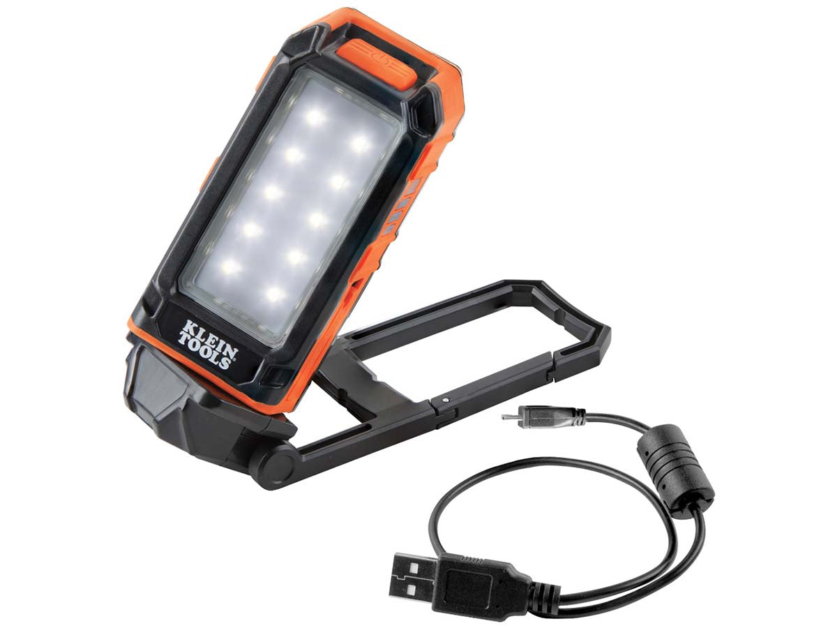 The Klein Tools Rechargeable Personal Worklight will quickly become your go-to lighting source while on the job. With an attached kickstand that rotates 270-degrees, it's possible to have remote, hands-free lighting on any work site. The kickstand can hold the light up on a flat surface or can be mounted using the embedded magnets, three nail notches, or built-in carabiner. This personal worklight can reach a max output of 460 lumens for 9 hours and a low output of 175 lumens for 16 hours. These modes are great for working in dwindling daylight or super dark spaces with no permanent light source. In addition to a rotating kickstand, the worklight itself can rotate 360 degrees making lighting up any workspace super easy. The Klein Tools Rechargeable Worklight can also be used as a personal power bank for charging up smartphones and small electronic devices through the USB-A port on the side of the light. This personal worklight will quickly become a must-have on the job after one use!