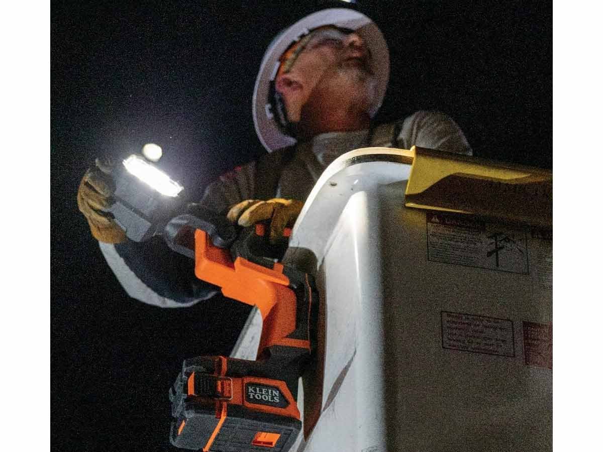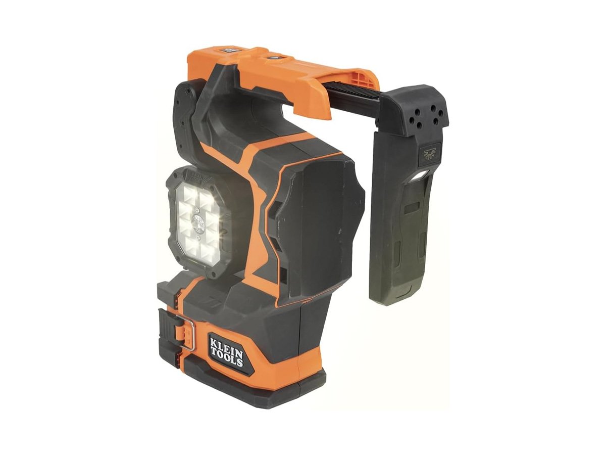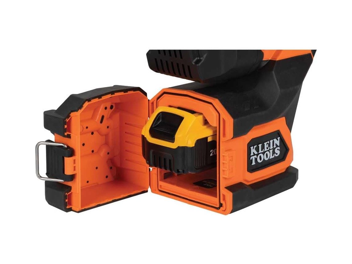 The Klein Tools Utility Light unfolds and is horizontally adjustable for 300 degrees around and vertically adjustable 180 degrees up and down. This design gives you precise aiming ability and maximum light exposure for whatever task you need to handle next. The Klein Tools Utility Bucket Light has a unique, extremely heavy-duty TPE construction and is powered by a 20V/4Ah lithium-ion rechargeable battery pack built by DeWalt. The light is rated to IP56, so is resistant to water, dust, and sand contamination.
