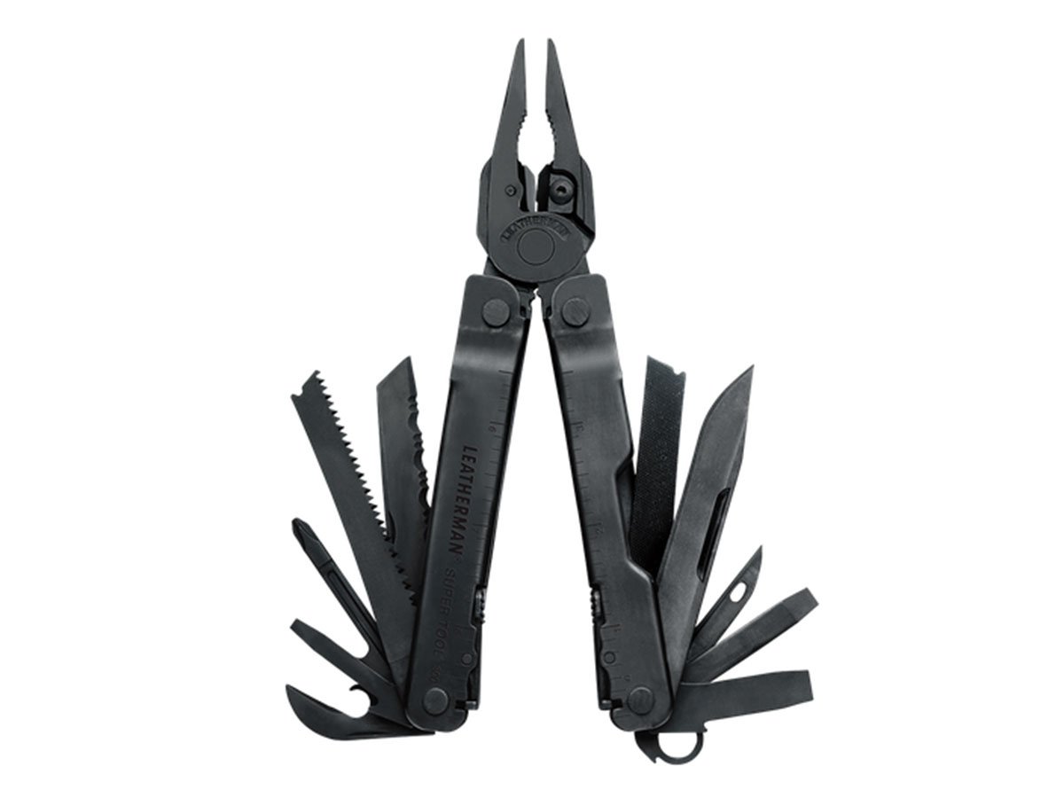 The award-winning Leatherman Super Tool 300 is the multi-tool for the working man. Larger pliers are the strongest ever produced and the sloped-top handle design means you can maneuver them further into tight spaces. When you're working with gloves on, the large side cutouts make it easy to still grab components and rolled handles make for a comfortable grip. Stranded, hard and regular wire cutters all come standard on Super Tool 300, and because they're removable you can repair or re-sharpen on the spot. 19 tools all ready for your toughest jobs. Super Tool 300 is back from vacation and ready to get to work.