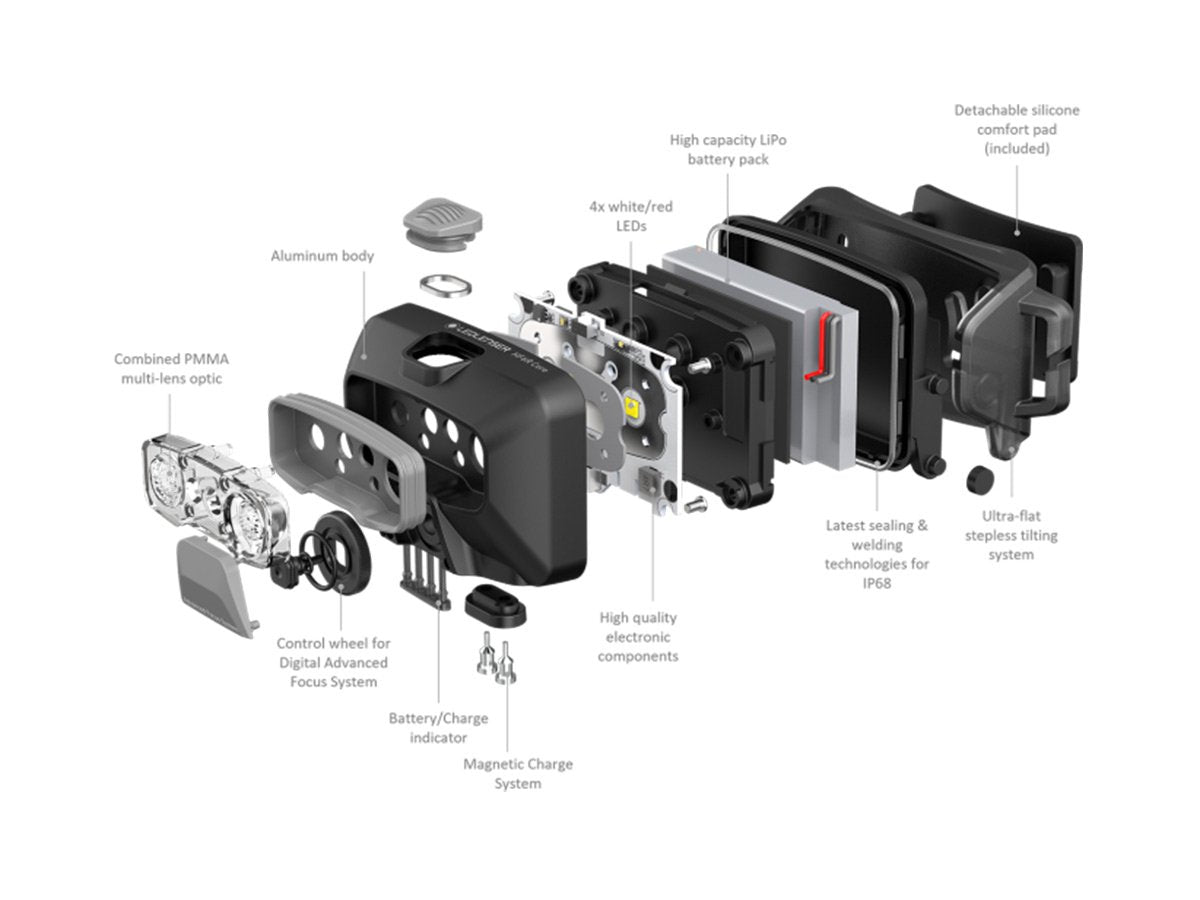 The headlamp's light 126g weight and included comfort pad makes it comfortable to wear for as long as you need to use it. Cooling technology and a Temperature Control System keep the LEDs from overheating during extended use. IP68 protections make sure the HF6R Core is safe to use in any environment or weather condition.