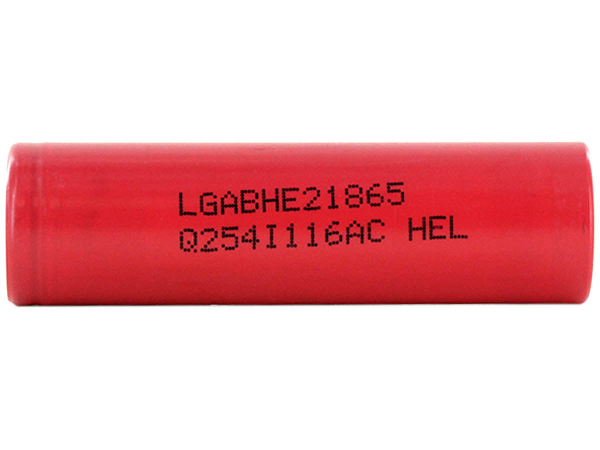 The LG HE2 is an 18650 battery ideal for high-drain battery packs, featuring flat top terminals and a max discharge current of 20A. Its INR (lithium nickel manganese) chemistry is what gives the battery its significant 2,500mAh capacity, which can be recharged 300+ times.