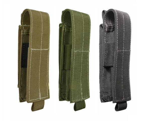 In partnership with hand-held LED light manufacturer INOVA/Emissive Energy Corp., MAXPEDITION created the 5" Tube Sheath models for hand-in-glove fit on INOVA's XO3, T2, and T3 models. These versatile sheaths, equipped with lateral elastic retention, also fit a multitude of flush or flared bezel torches from all major manufacturers. Rather than having the cost-cutting crimped bottoms like most other sheaths, MAXPEDITION Tube Sheaths have 1.1" diameter throughout, all the way to the base, greatly augmenting carrying capacity, versatility and accessibility!! MAXPEDITION Tube Sheaths are slim, saving precious space on web gear or belt. A secure velcro lid provides full range of length adjustability while the grommeted bottom provides quick drainage and shine through functionality. Features: Limited Lifetime Warranty Fits on duty belts Attachment options: Short Malice Clips used for modular attachment onto ALICE, MOLLE/PALS, Maxpedition webbing. Optional clips not included. Other applications: Balisong; OTF Automatic Knives; Collapsible Batons; Multi-Tools (Leatherman, Gerber, SwissTool); Folding Knives; O.C. Pepper Spray; Medical Inhalers; Hunting Calls. Compatible Flashlight Models from Major Manufacturers INOVA: T2, T3, XO, XO3 Surefire: 6P Pelican: M6 1419B 1419G 1419K