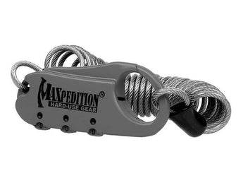 The Maxpedition Steel Cable Lock is a 3-digit combination lock connected to a 5ft steel-braid coiled cable, commonly trusted as a lock for securing everything from bicycles to gun cases and beyond. The digits are set using a triple dial system which stops at "0", enabling you to use the lock when you cannot see the dials. The simple addition of a tool to turn the dials will leave thieves dumbfounded while you can easily operate the lock with a pen or other pointed object.