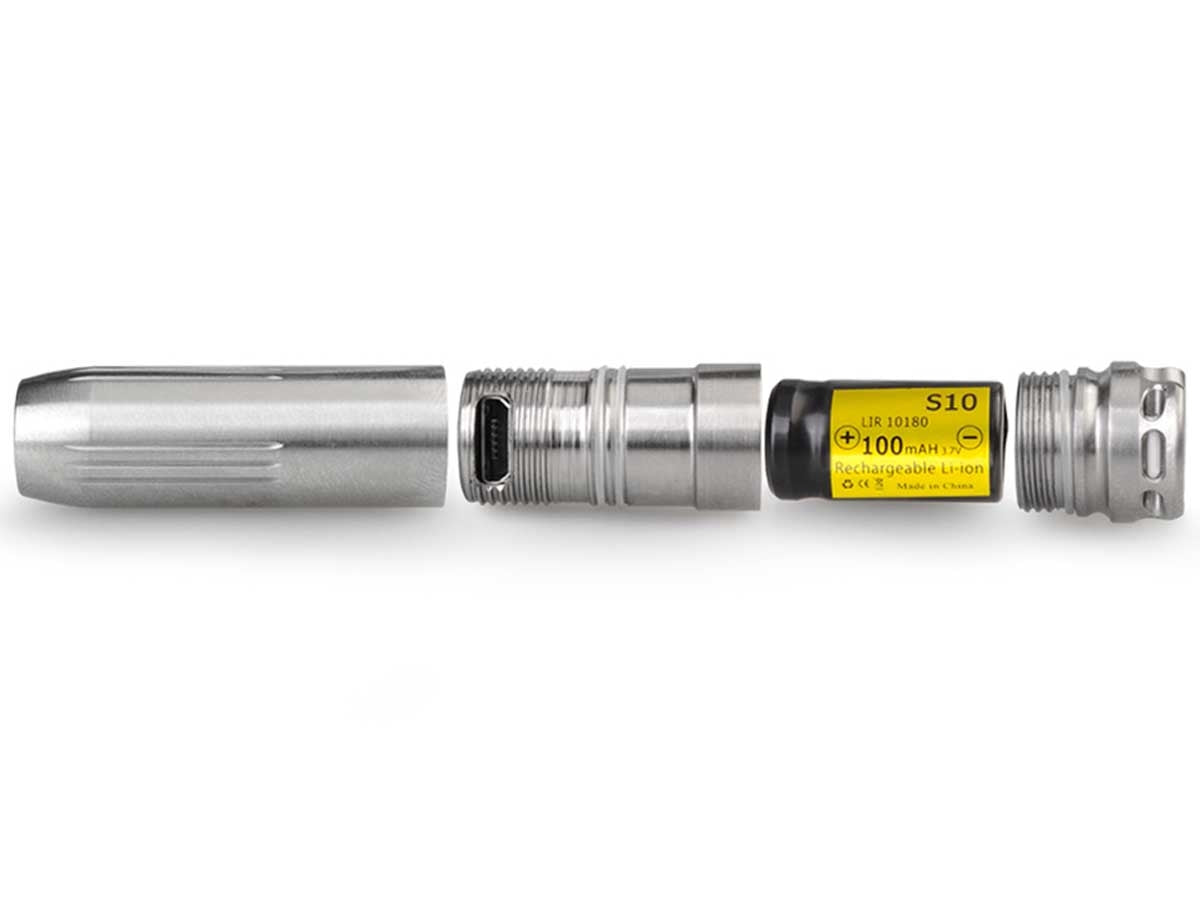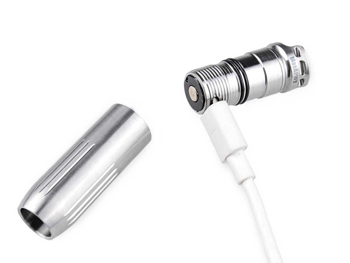The MecArmy BL43 rechargeable bullet flashlight is a mini LED light. Made out of durable TC4 Titanium, this little light will withstand all the wear and tear that comes from being carried around daily. On the tail end of this flashlight are lanyard or necklace holes that will allow you to carry the BL43 with you everywhere you go. The micro-flashlight utilizes an easy twist to activate operation. When your battery is finally drained easily plug your light in with a USB cord (not included) and charge your flashlight back to life in as little as an hour.