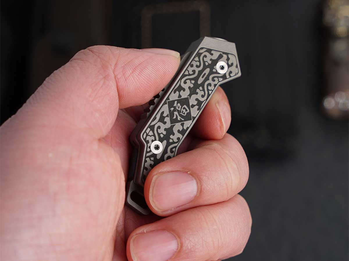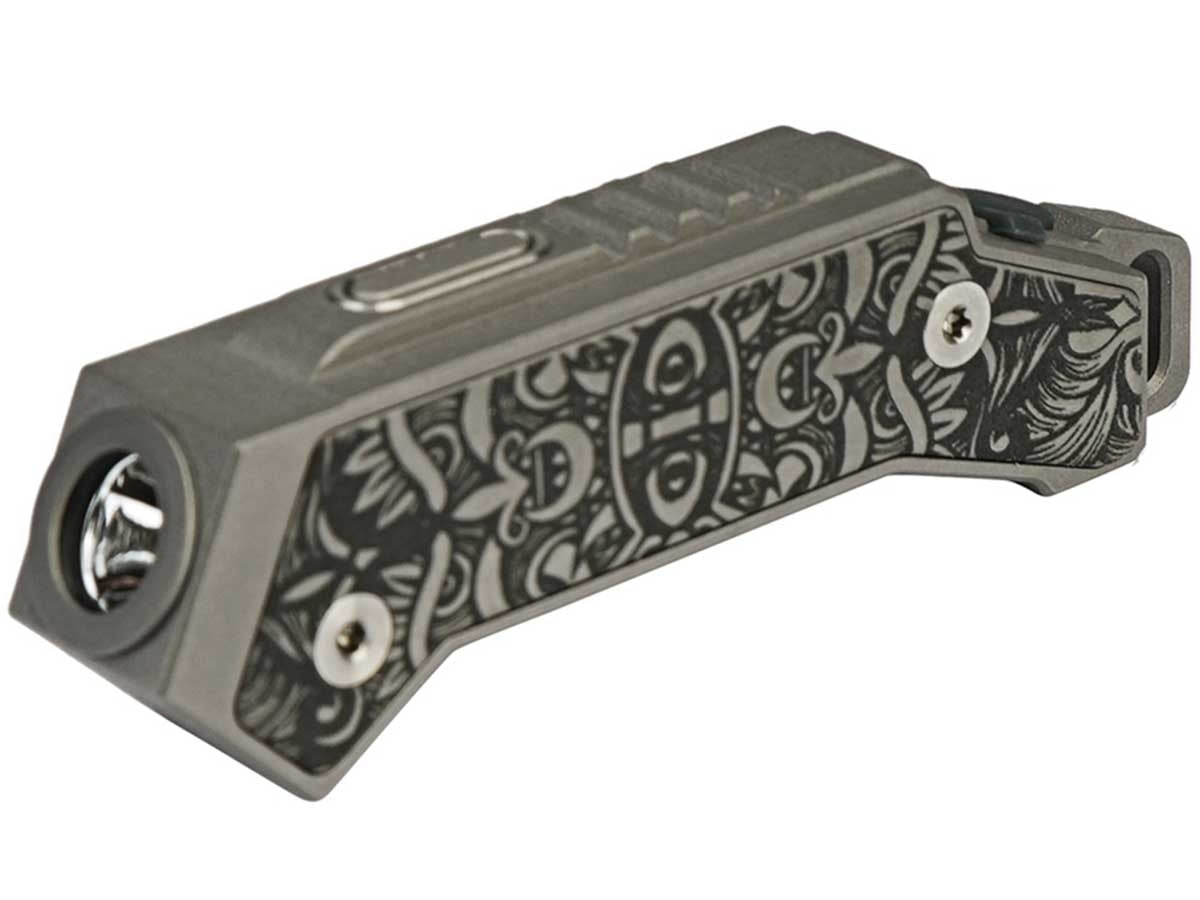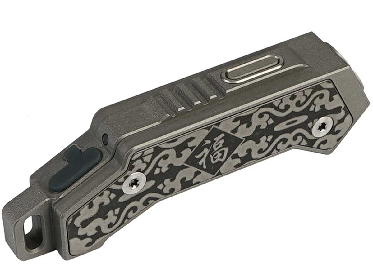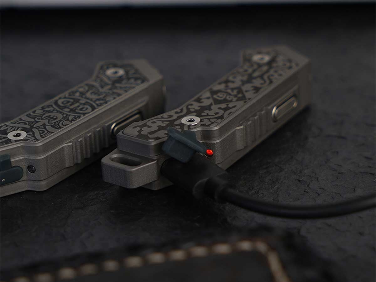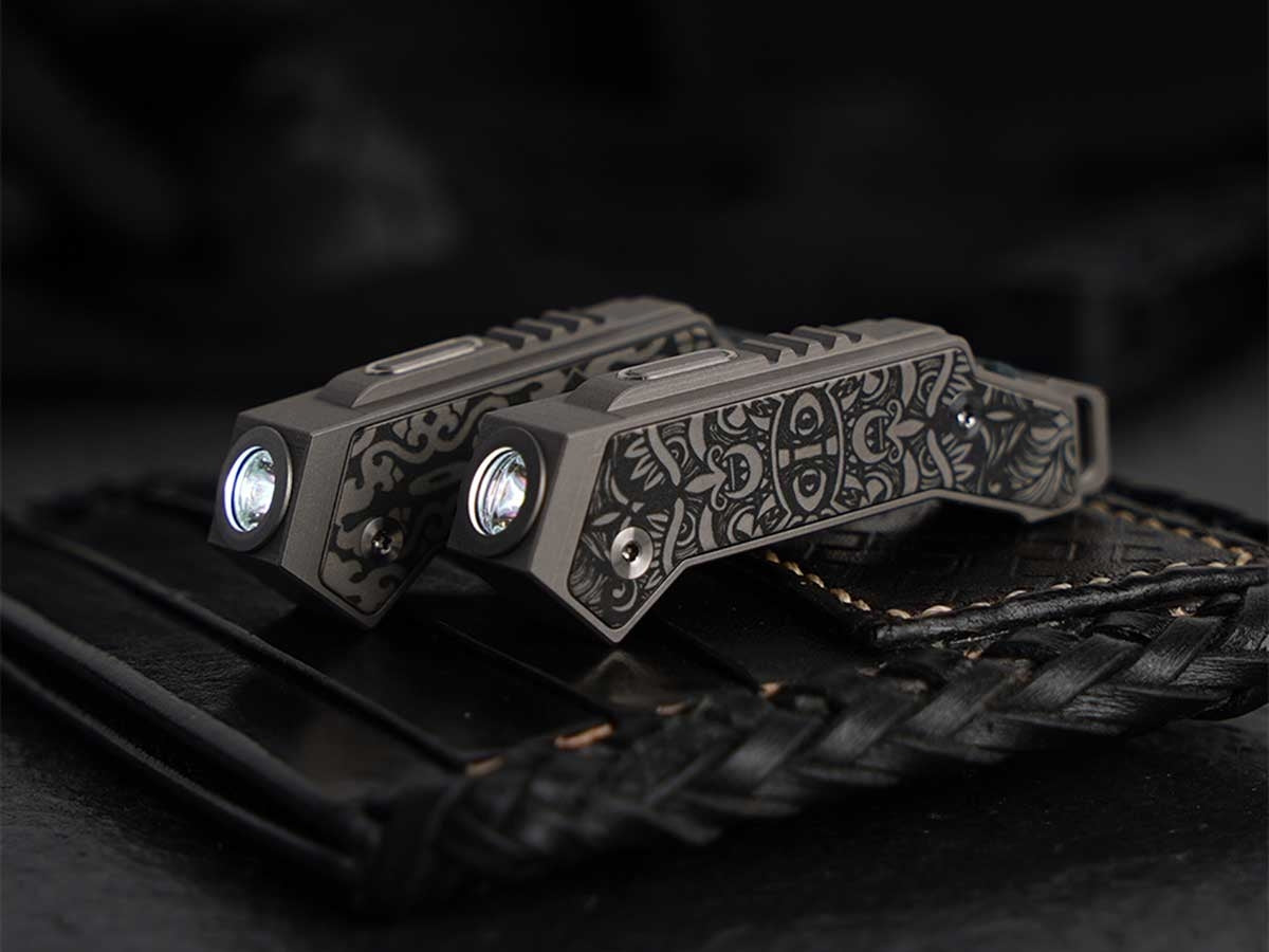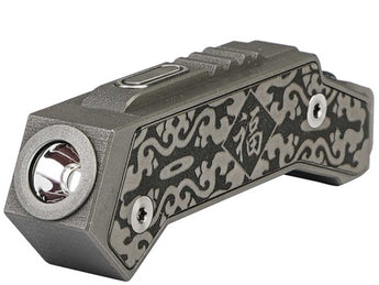 Speaking of convenience, this MecArmy keychain flashlight is USB rechargeable! Simply connect the included micro USB-to-USB charging cable to a power source to recharge your light's built-in LiPoly battery with ease. No more having to carry around spare batteries! In addition to comfort and ease-of-use, the MecArmy FL02 keychain flashlight is a powerhouse of a small-size light. How many other lights under three inches long provide four output modes, up to 360 lumens? Finally, the FL02 rechargeable flashlight, from MecArmy, is available for sale in five different patterns to suit any personality. Choose between the Geometry design if you like a more symmetric pattern, or go simple with either the Sandblasted or the PVD Black options. For a unique style, MecArmy offers the Lucky pattern, which features Chinese symbol, or the Lucky Monster, which has a rare, monster-like face. The MecArmy FL02 is a one-of-a-kind keychain flashlight will make you rethink how you hold a flashlight!