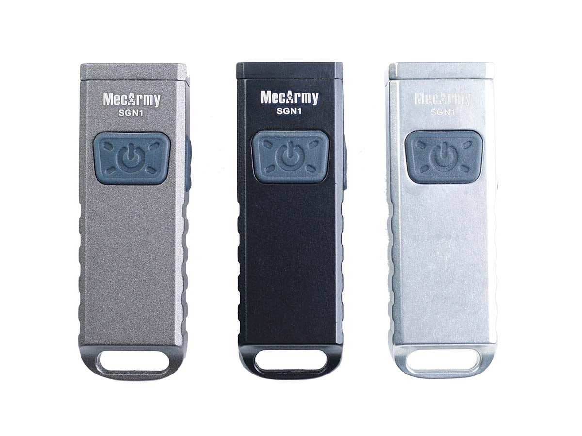 Mec Army has found the perfect balance between functionality, style, and compact construction in the new SGN1 keychain flashlight. This mini light is just over 2" long and features 4 brightness modes ranging from 5 to 530 lumens (as well as a powerful strobe function). The built-in Li-Po battery lasts over 10 hours and can be quickly recharged in as little as 2.5 hours with the included USB cord. This keylight obviously has a loop-tailcap made of durable zinc-alloy and easily attaches to your keychain or lanyard. Get the Mec Army SGN1 now, available in three stylish choices of black, grey, and stonewashed.