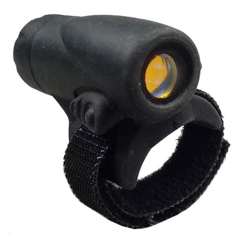 The body of this tough, rugged finger light has 3 layers of molded plastics and a rubber coating for optimal shock absorbance and isolation. The Velcro strap can be adjusted to fit any size finger and can even be worn over gloves.