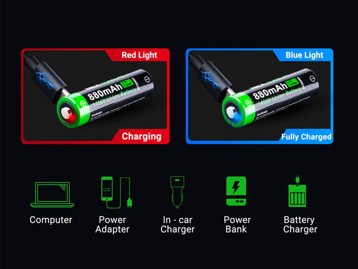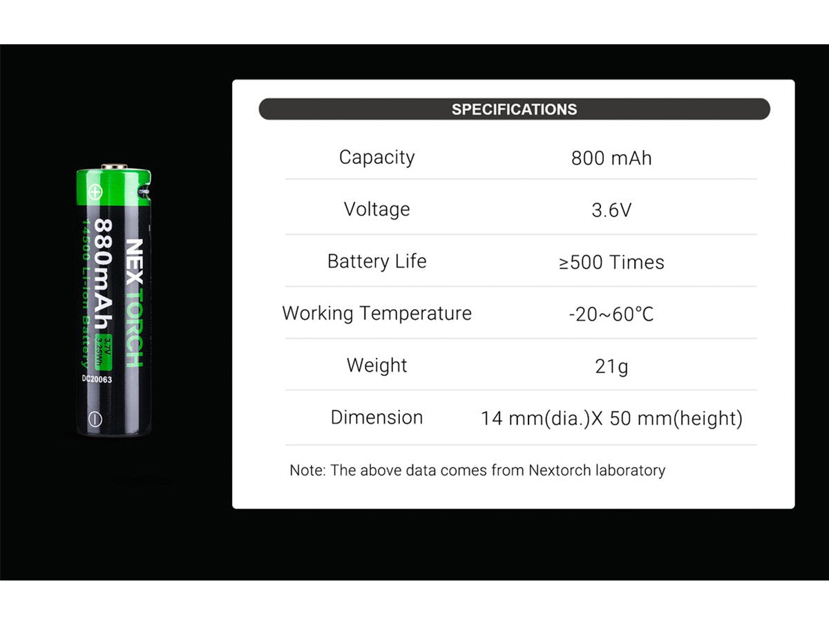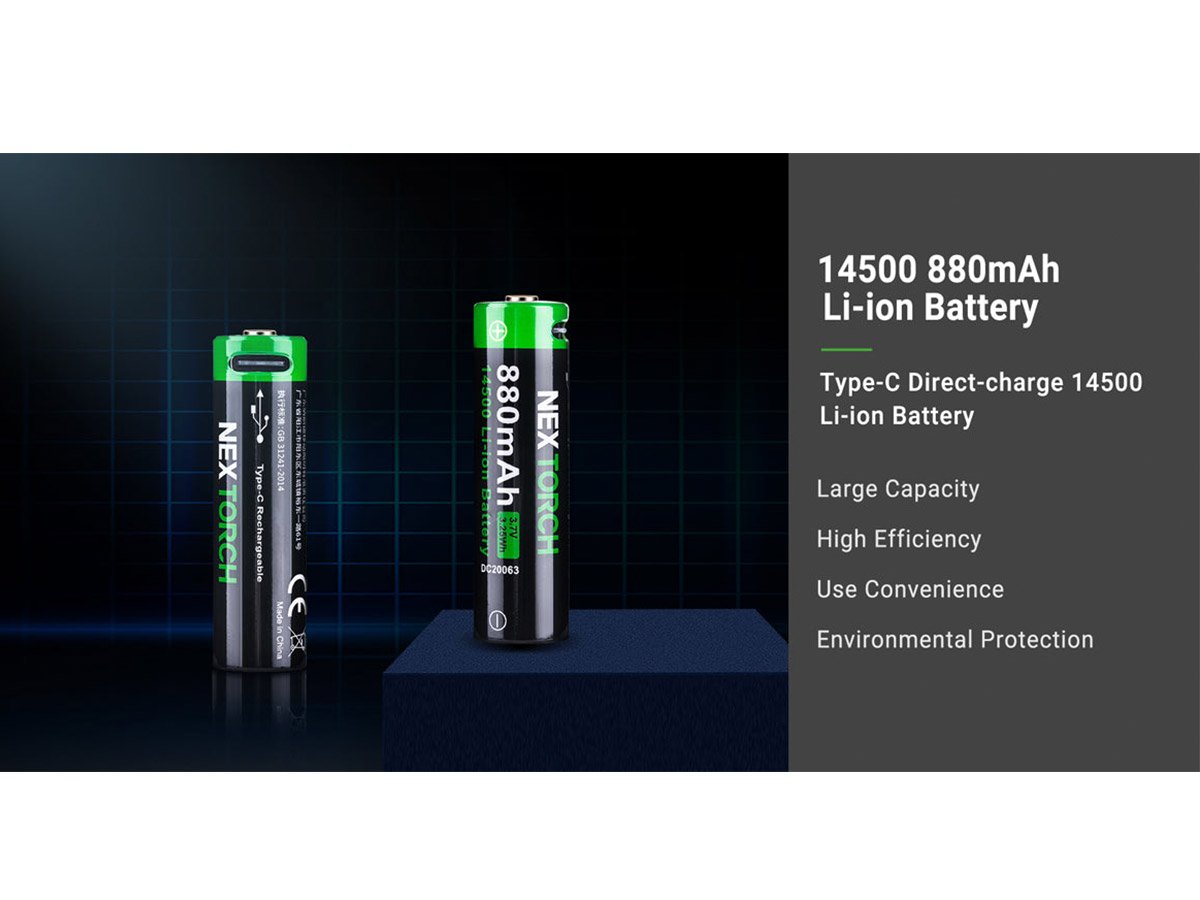 Nextorch 14500 Li-ion Battery with USB-C Charging Port