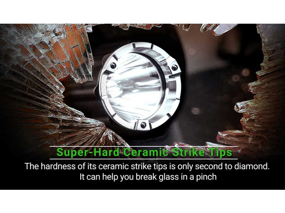 - Includes a super-hard nano-ceramic beaded strike bezel to break windows
