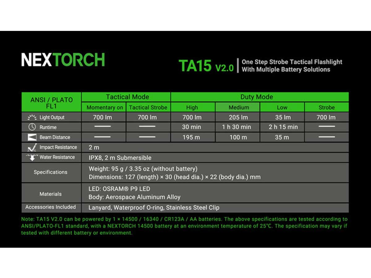 Nextorch TA30 Max LED Tactical Flashlight - 2100 Lumens - CREE XHP50.2 - Includes 1 x USB-C Rechargeable 21700
