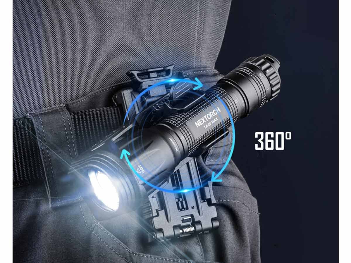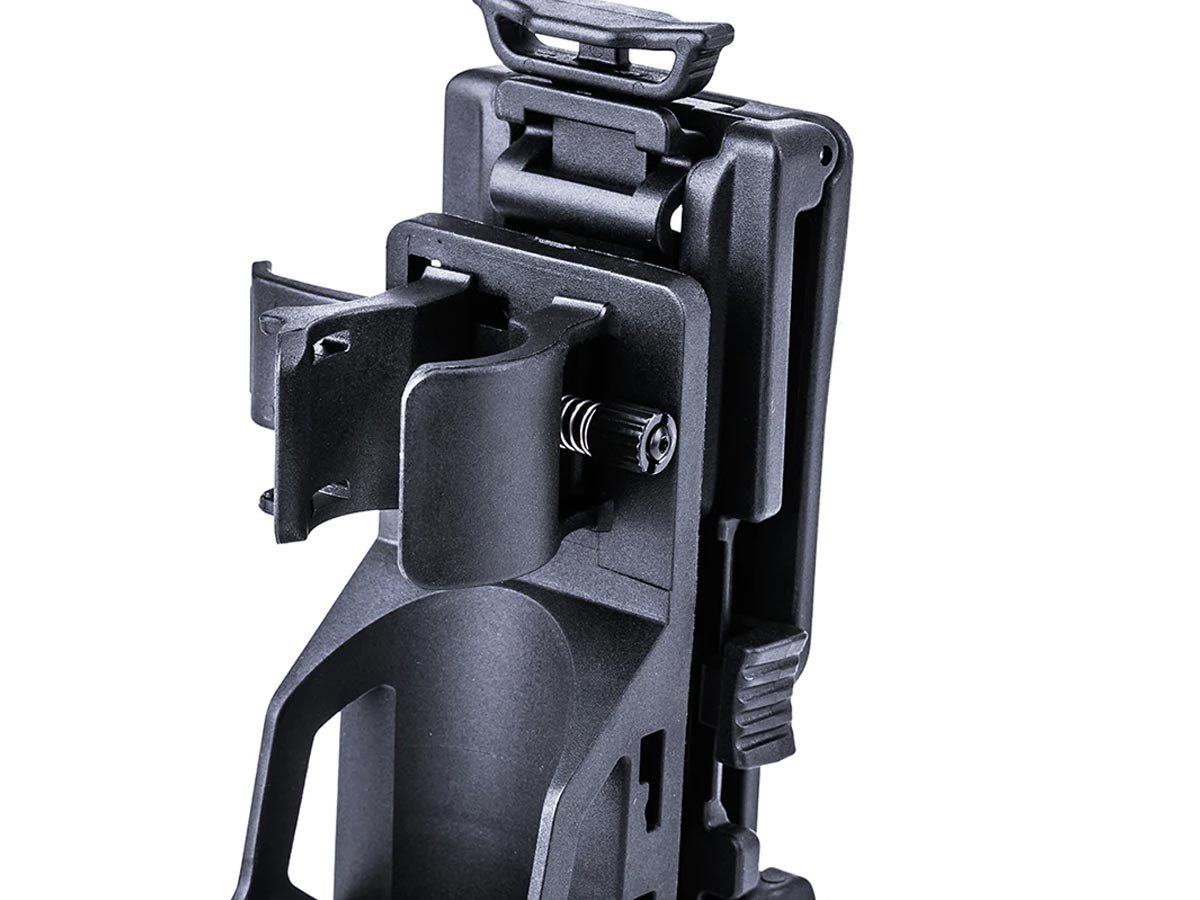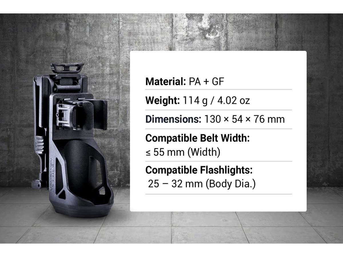 If you need to conveniently store your flashlight while you are on the job but also have fast access to it at all times, then use the Nextorch V51! This holster can fit any flashlight with a maximum diameter of 32 millimeters so that you can incorporate it into any of your favorite sets of gear. Its design also allows you to rotate it with the light still attached so you can keep your hands free! With its locking block design, you can also rest assured that it will never accidentally fall off of your belt.