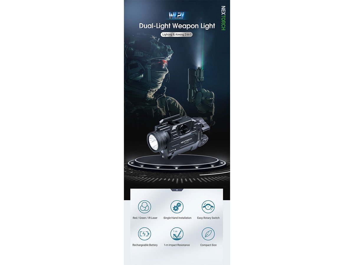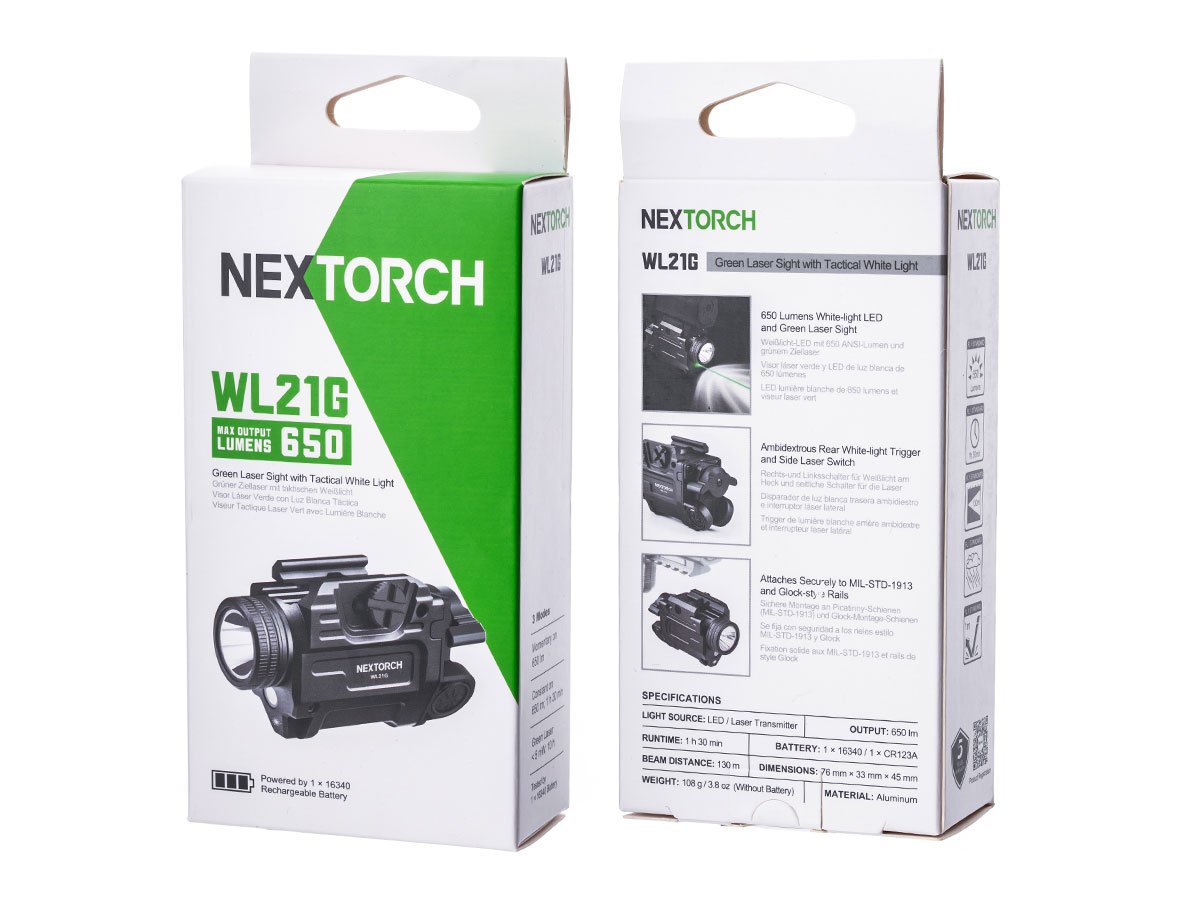 Nextorch WL21 LED Weapon Light with Red, Green, or Infrared Laser - 650 Lumens - Osram P9 - Includes 1 x 16340 with Built-In Charging Port