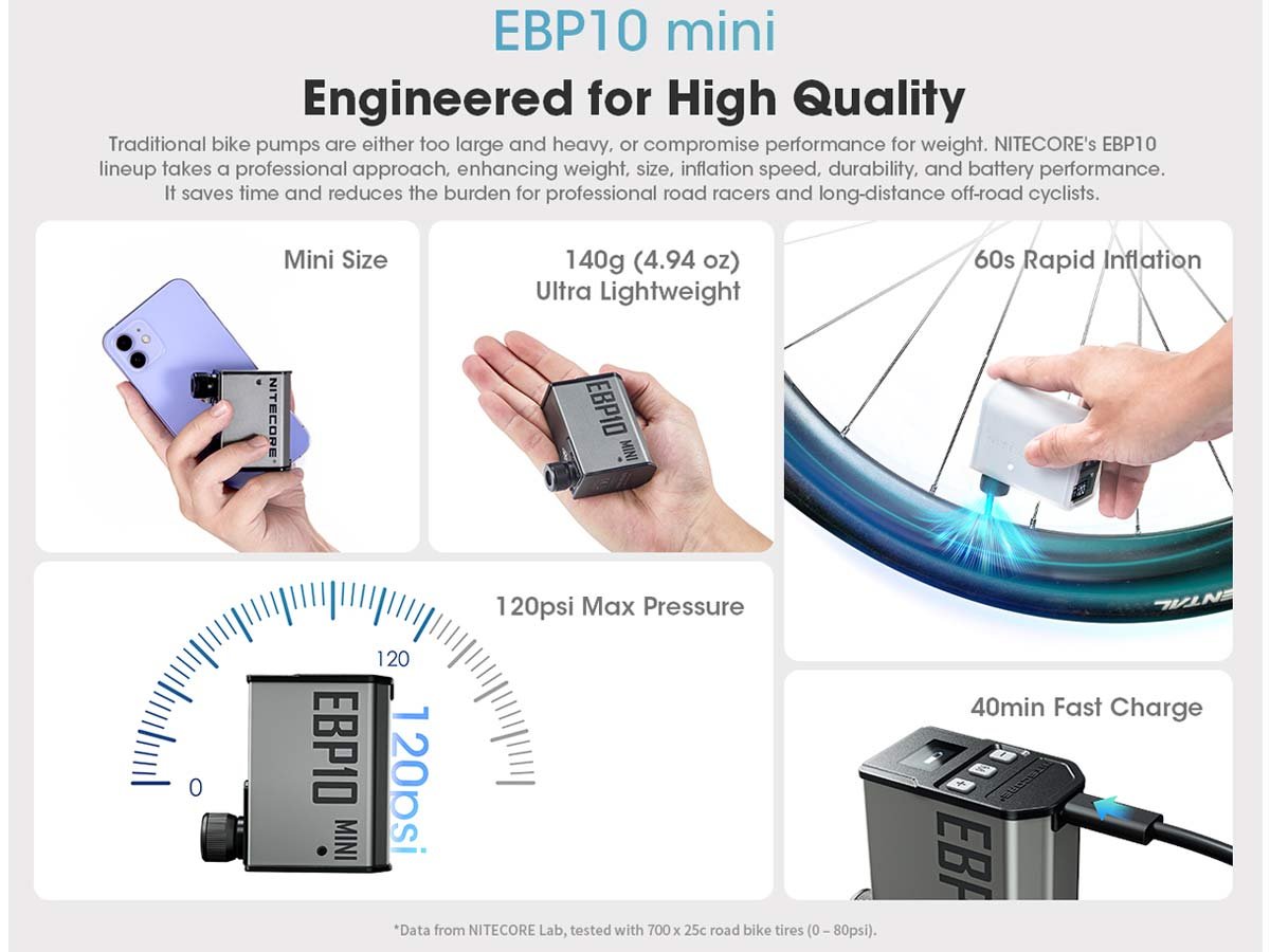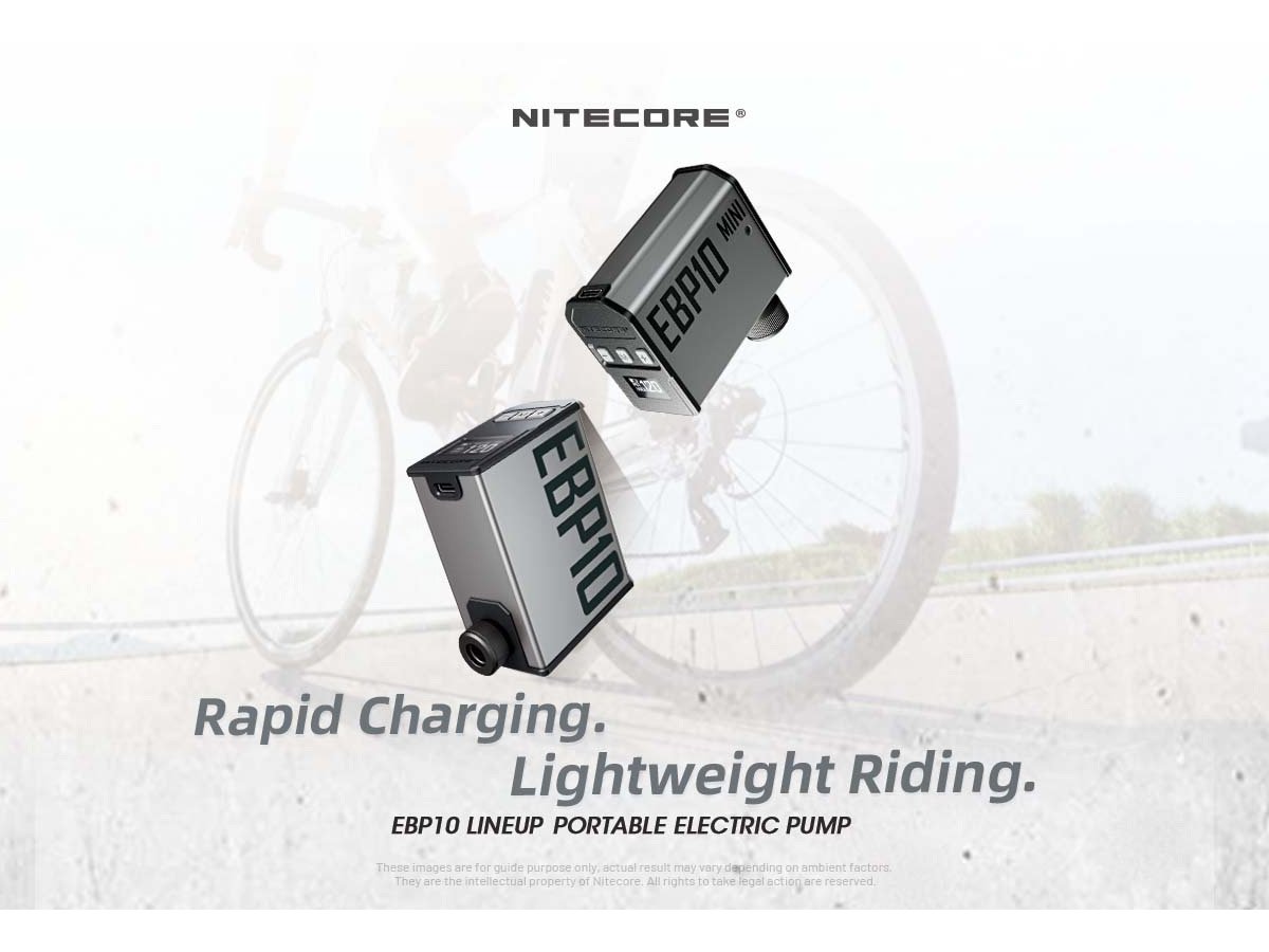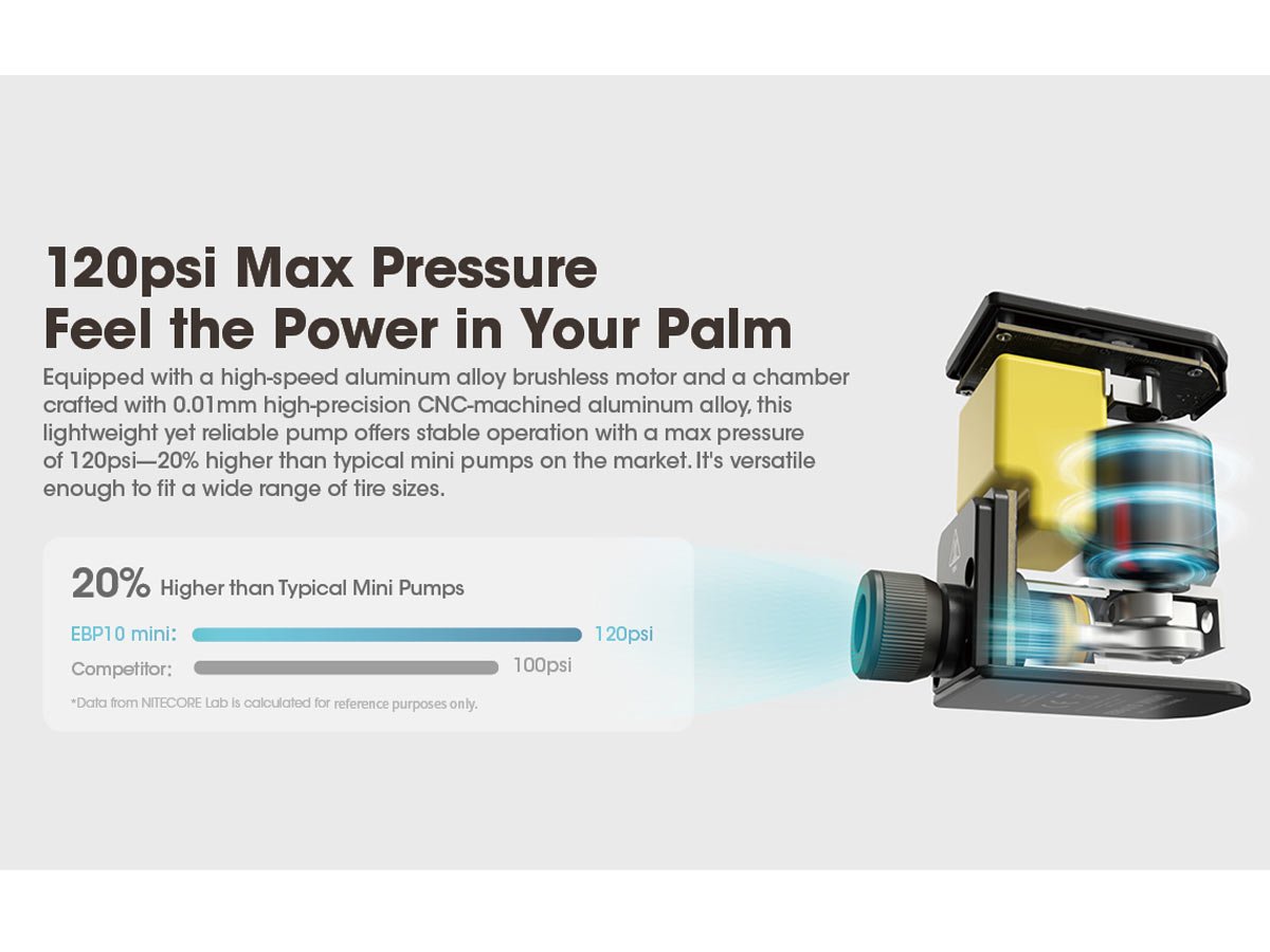 Nitecore EBP10 Mini Portable Electric Pump - 120psi Max - Uses Built-in 11.1V 2.55Wh Li-ion Battery Pack