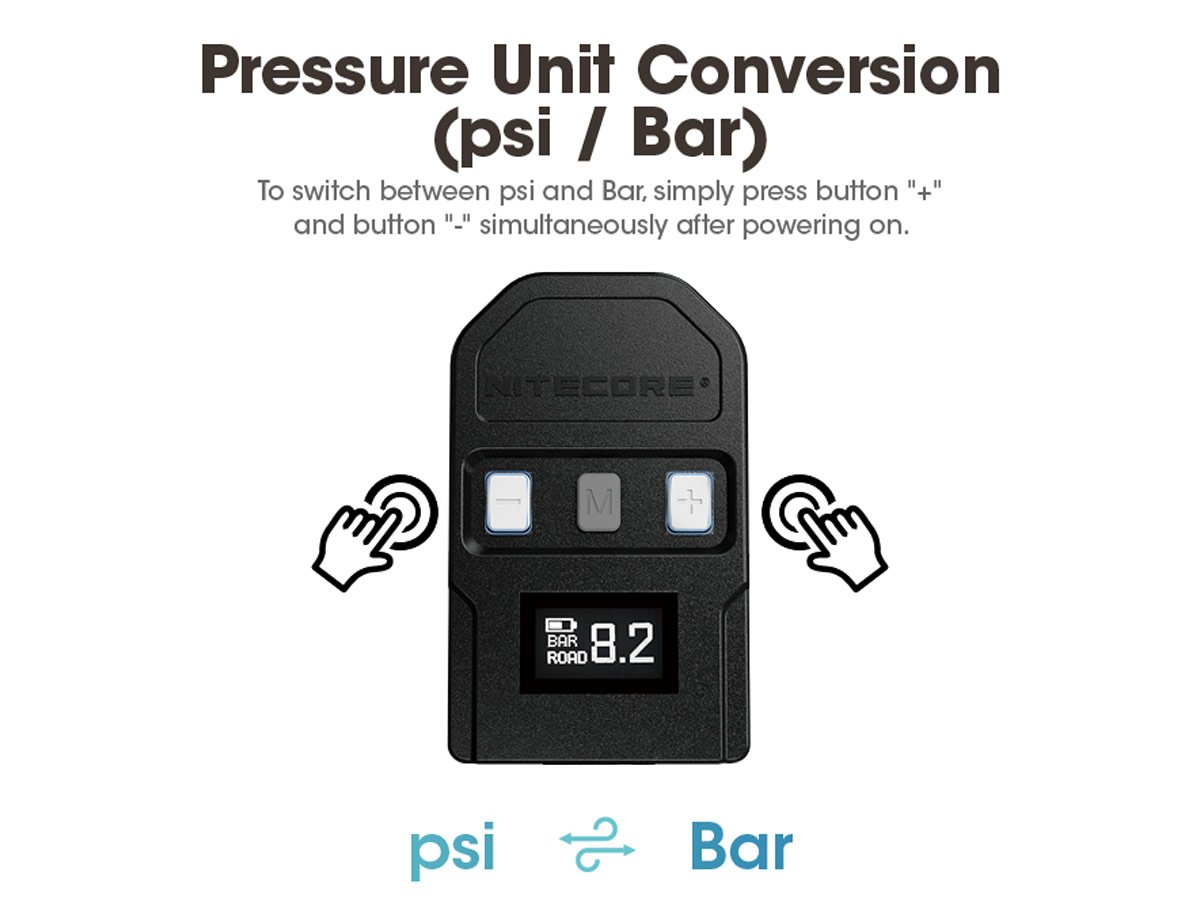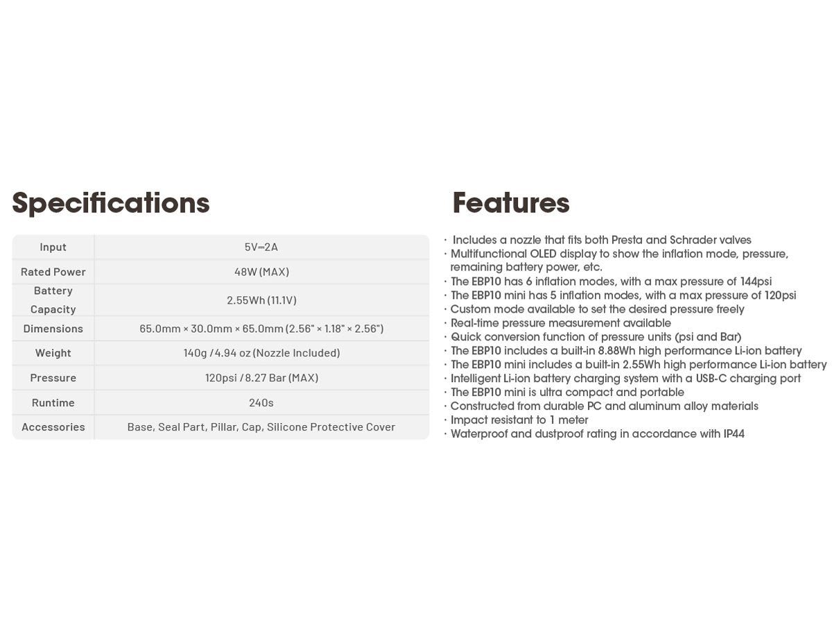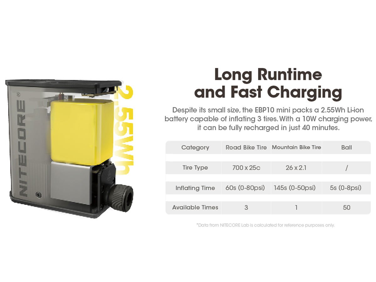 Nitecore EBP10 Mini Portable Electric Pump - 120psi Max - Uses Built-in 11.1V 2.55Wh Li-ion Battery Pack