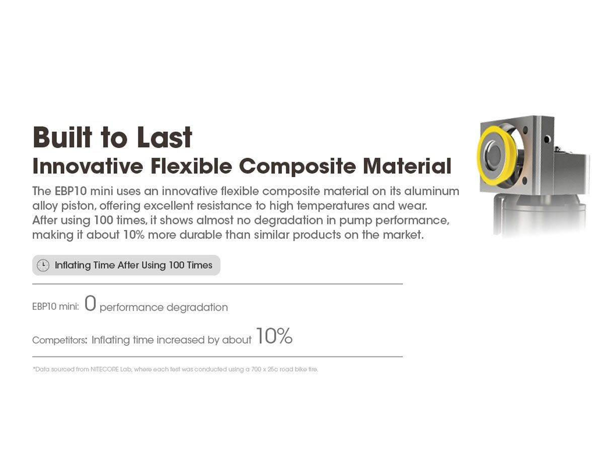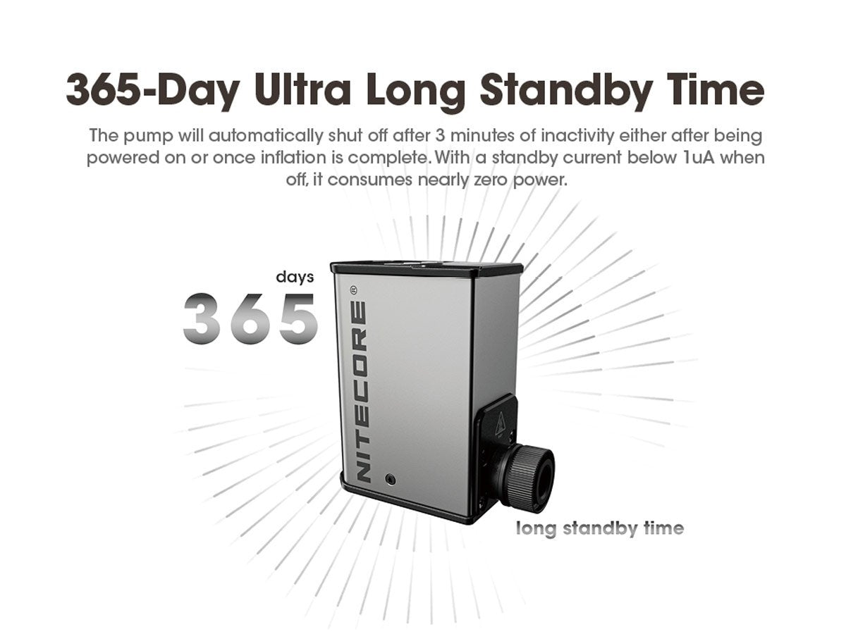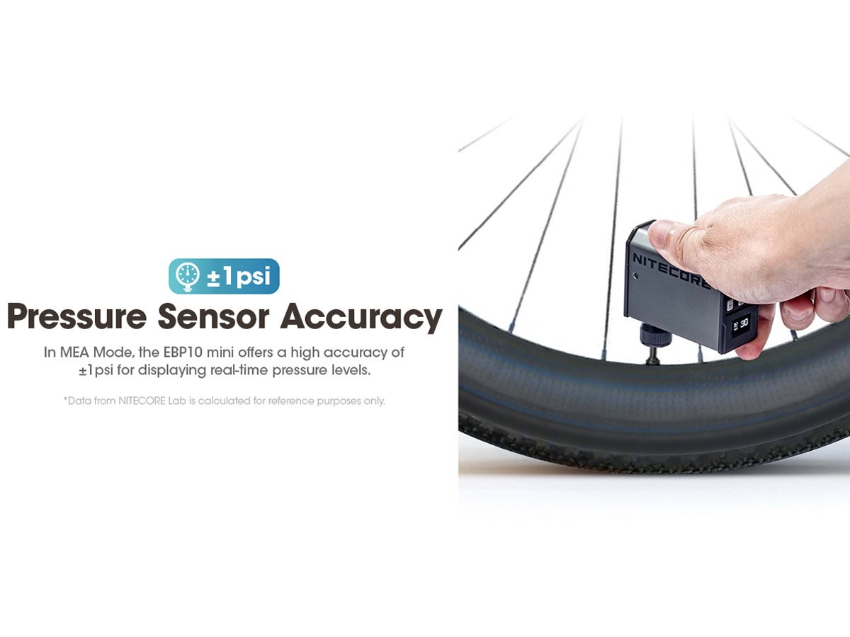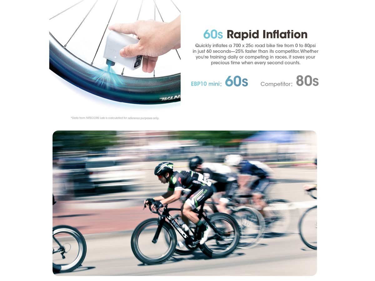 You don't have to worry about your bike tires deflating while you're out riding with the Nitecore EBP10 Mini! Its output range of 1 - 120psi means you can reinflate road and mountain bicycle tires. You can even reinflate your favorite soccer or basketball! This pump features inflation times between 5 and 145 seconds, getting you back in action as soon as possible.
