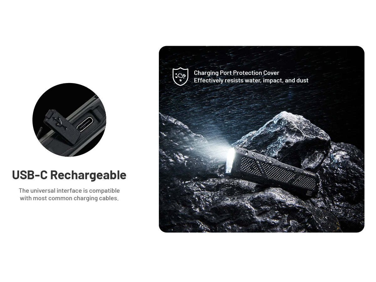 - Powerful USB-C rechargeable battery provides runtimes reaching over 10 days