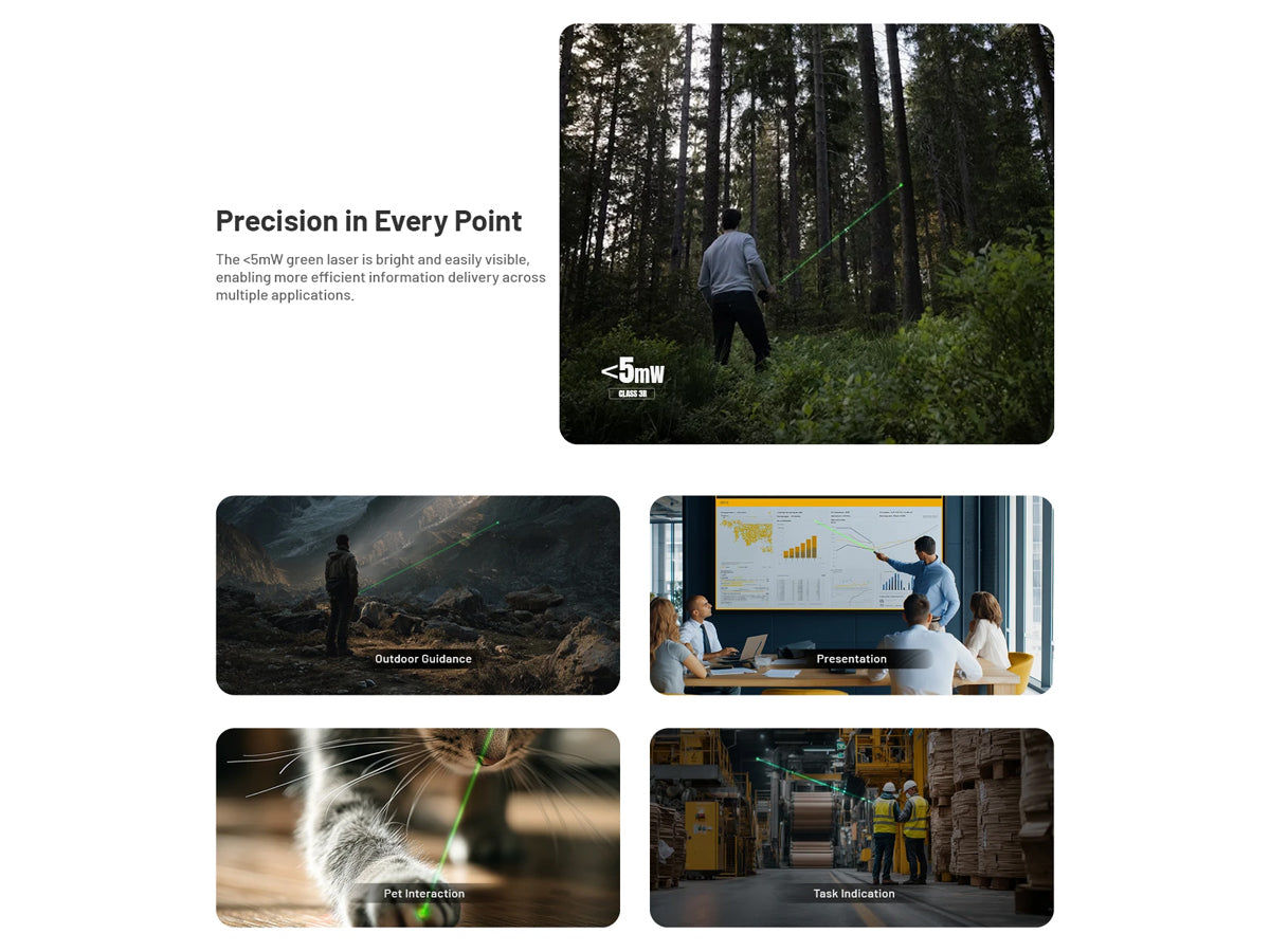Green laser is Class 3R - do not shine in eyes and use safely.