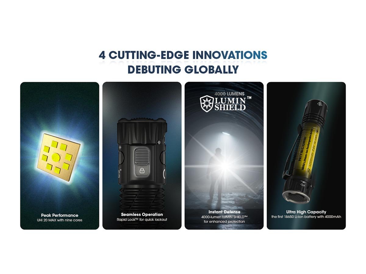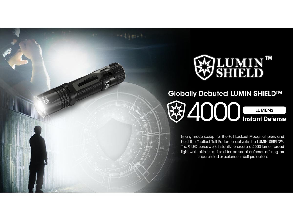 • One-of-a-kind LUMIN SHIELD mode offers momentary access to 4000 lumens