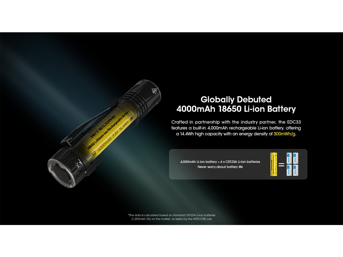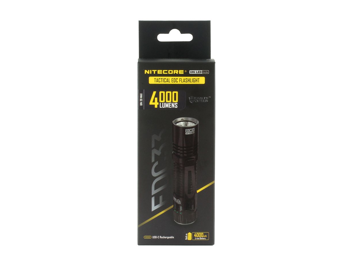 Nitecore EDC33 USB-C rechargeable Tactical LED Flashlight - NiteLab Uhi 20 MAX - 4000 Lumens - Uses Built-in 4000mAh Li-ion Battery Pack