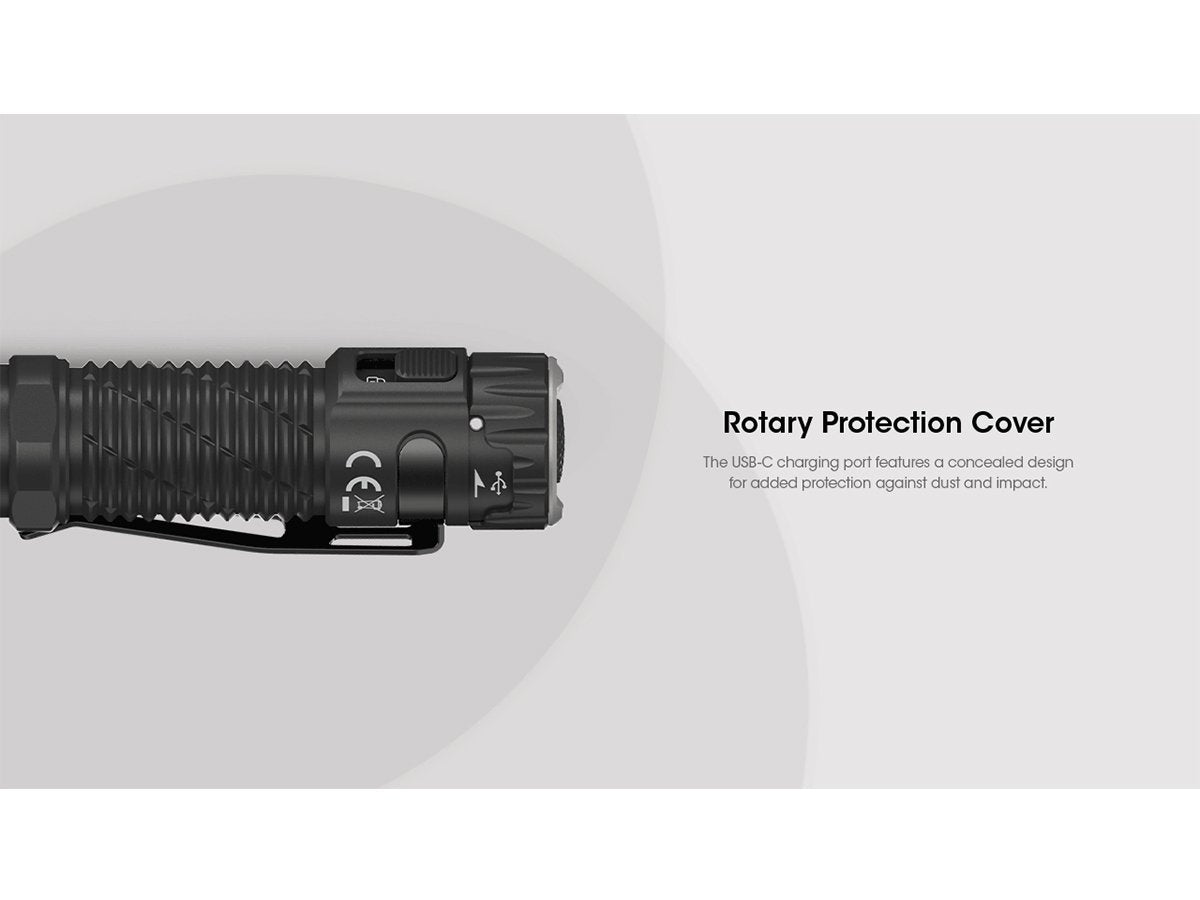 • » Rotary protective tailcap guards USB-C port from dust, impact