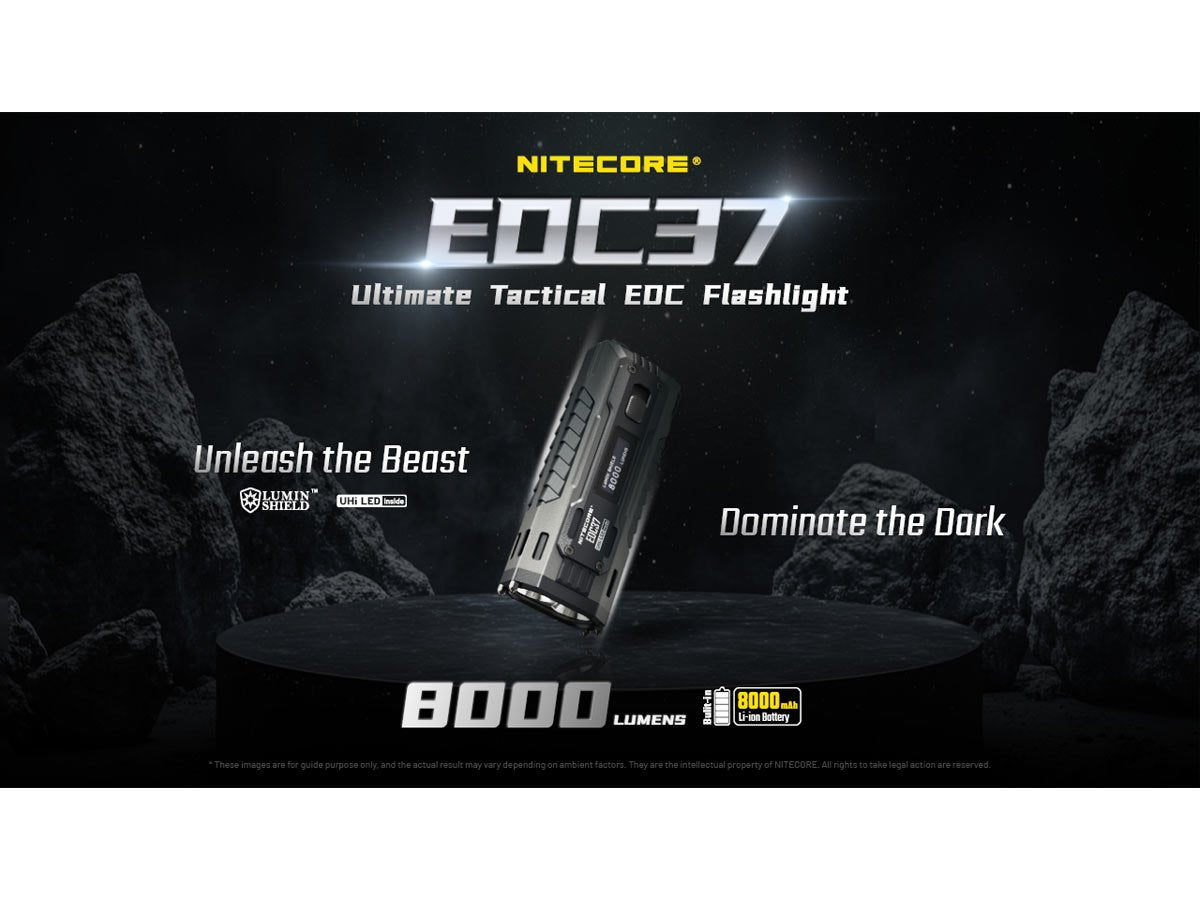 Nitecore EDC37 USB-C Rechargeable LED Flashlight - 8000 Lumens - 2 x NiteLab UHi - Uses Built-in Li-ion Battery Pack