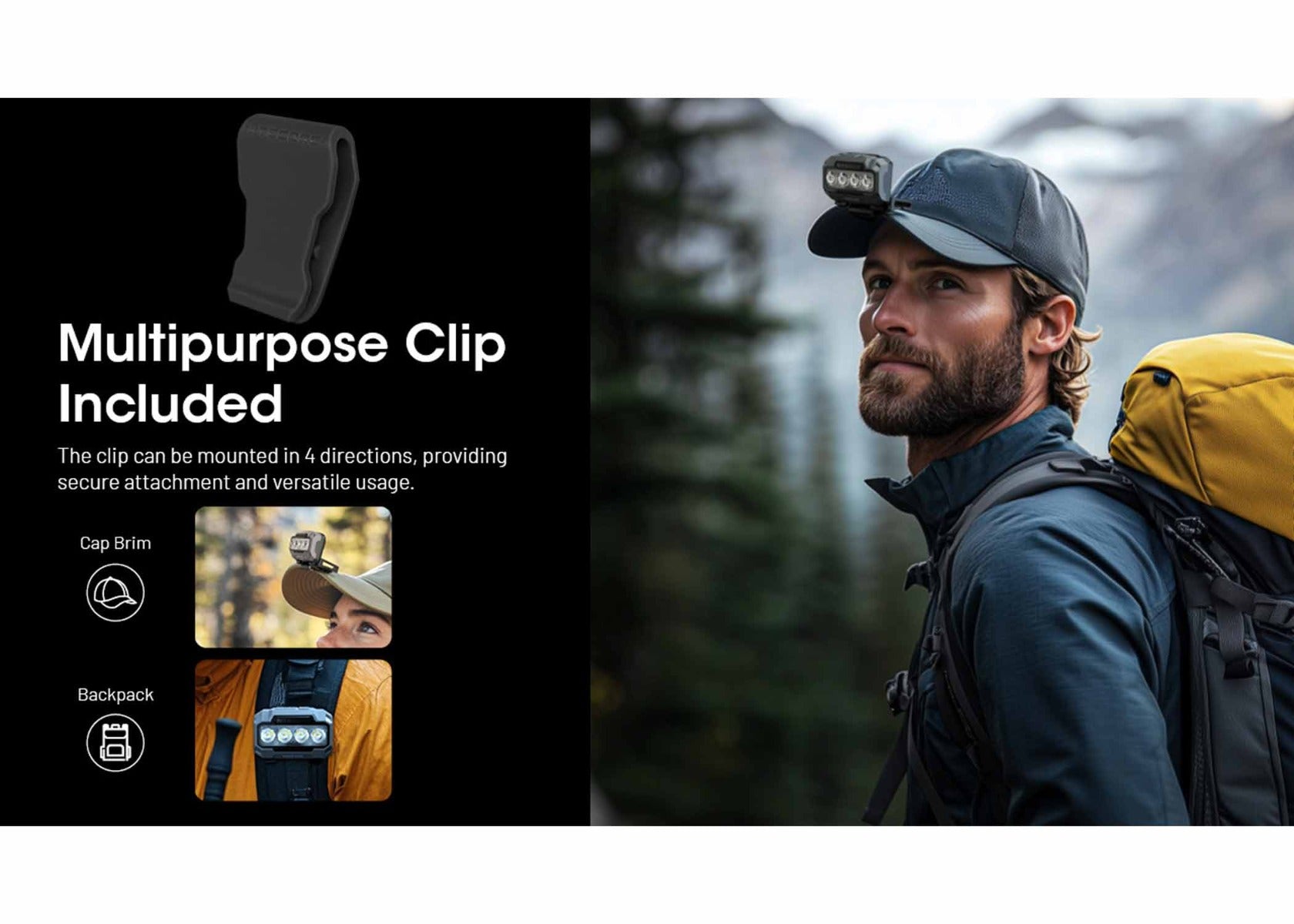 The HA23 UHE aims for comfort with its breathable headband. Its hollow design aids in moisture wicking and gives users peace of the mind to wear for long durations. It is featherlight weighing just 56g to prevent weighing you down. Use the multipurpose clip for customizable lighting that attaches to hats, bag straps, and more! It also uses a reflective design for visibility to let others know you're around.