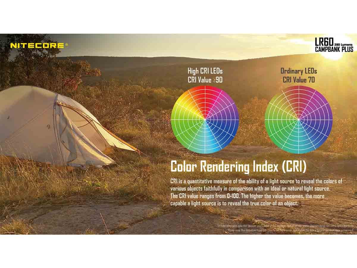 With nine 90+ CRI LEDs in the LR60, this lantern accurately renders color within its beam and adds a warm color temperature (4000-4500K). This beam combination results in a beam that's easy on the eyes and has a max output of 280 lumens for all your camping needs.