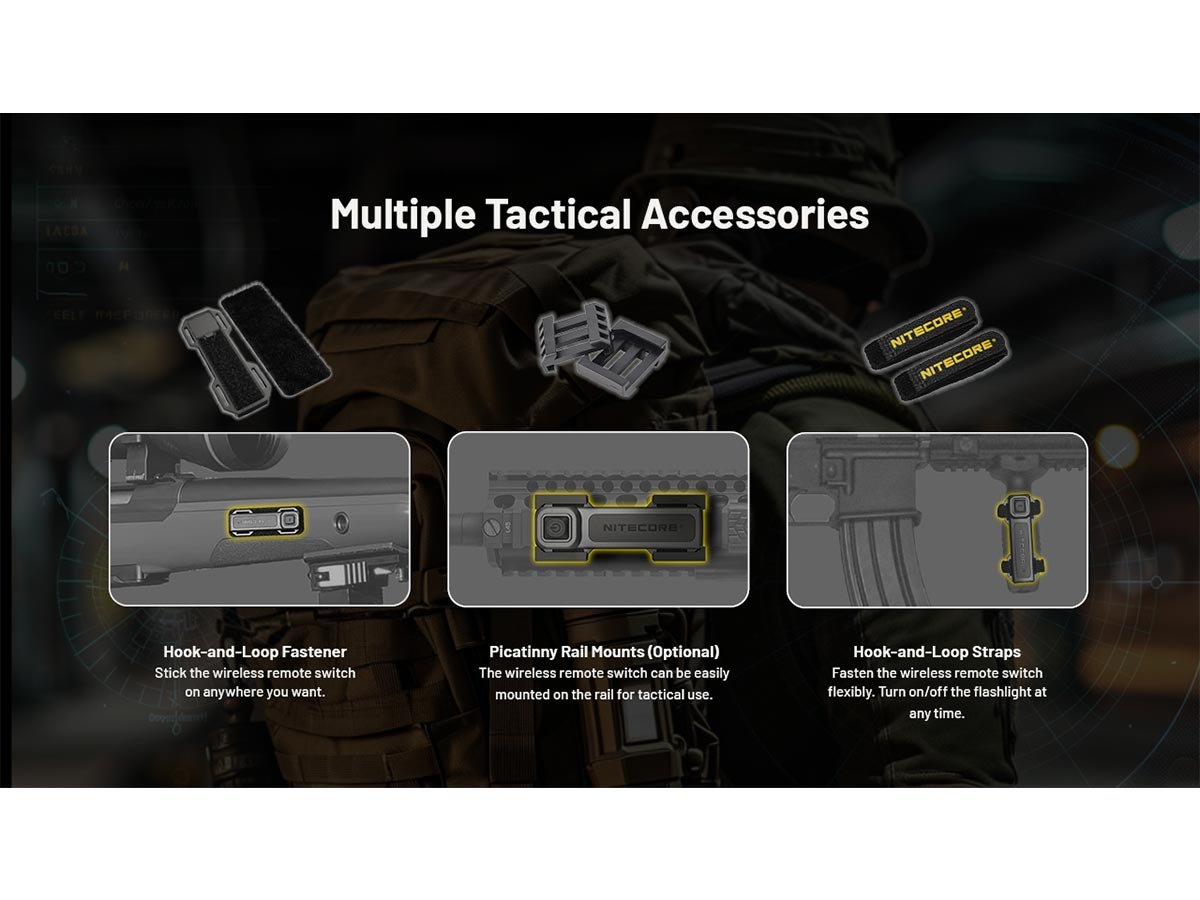 - Wireless switch, Picatinny rail, hook-and-loop accessories for peak preparedness while hunting