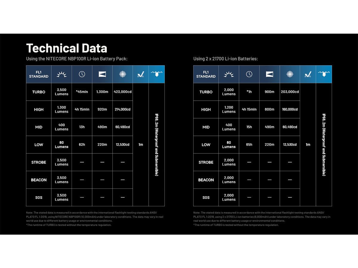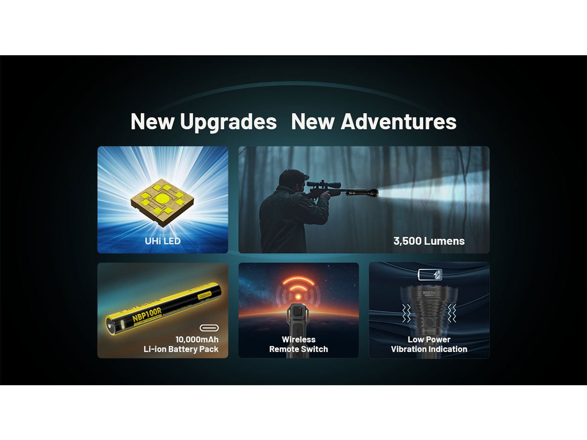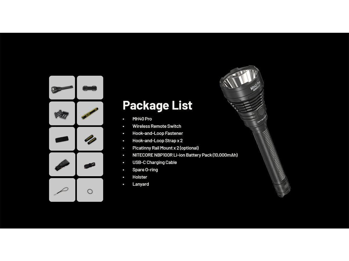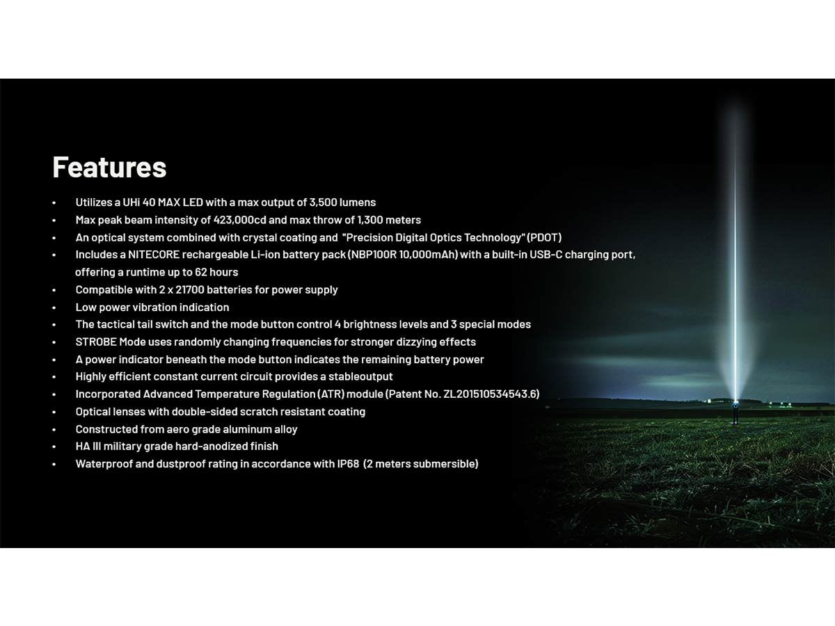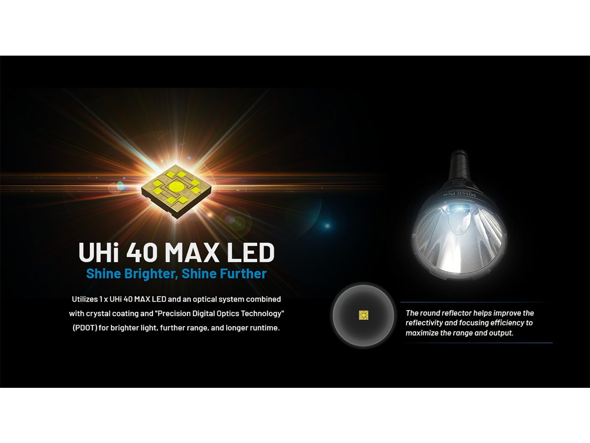 Nitecore MH40 Pro LED Flashlight - 3500 Lumens - NiteLab Uhi 40 Max - Includes 1 x NBP100R Li-ion Battery Pack