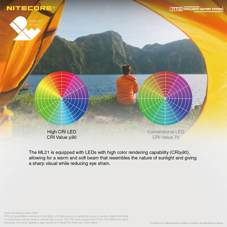 The Nitecore ML21 is a magnetic flashlight bulb that attaches easily to a Nitecore NL2150HPi 21700 Battery or Nitcore NL2145HPi, NL2140HPi battery. With a 90 CRI rating, this light provides a warm, soft beam that makes it a great back-up light for reading, camping, and emergencies. The 4500K color temperature ensures your eyes won't strain and the 80 lumen beam is plenty of light to see in front of you. With tail stand capability, you can use this light for additional illumination to use as a lantern for up to 19 hours! Plus, the compact design of this light makes it easy to keep on you at all times.