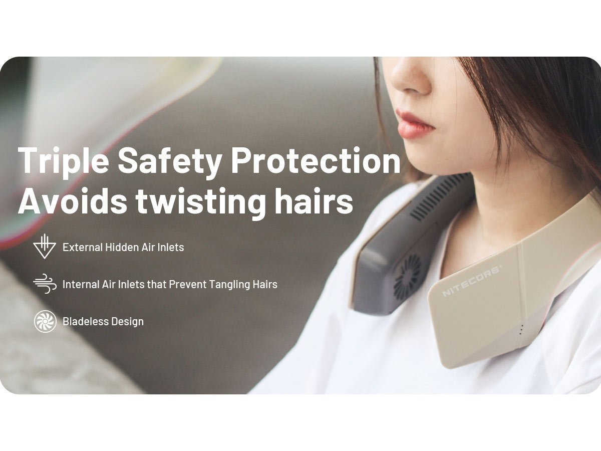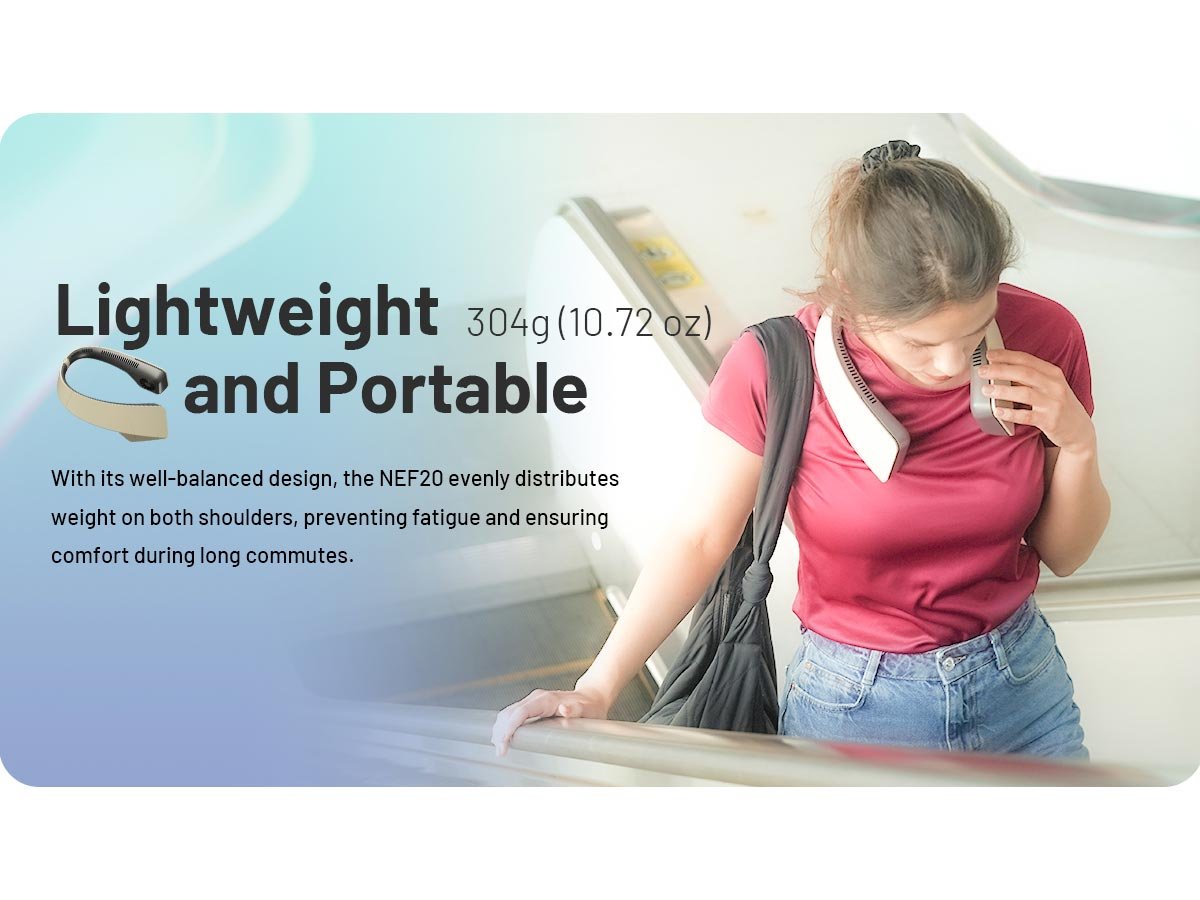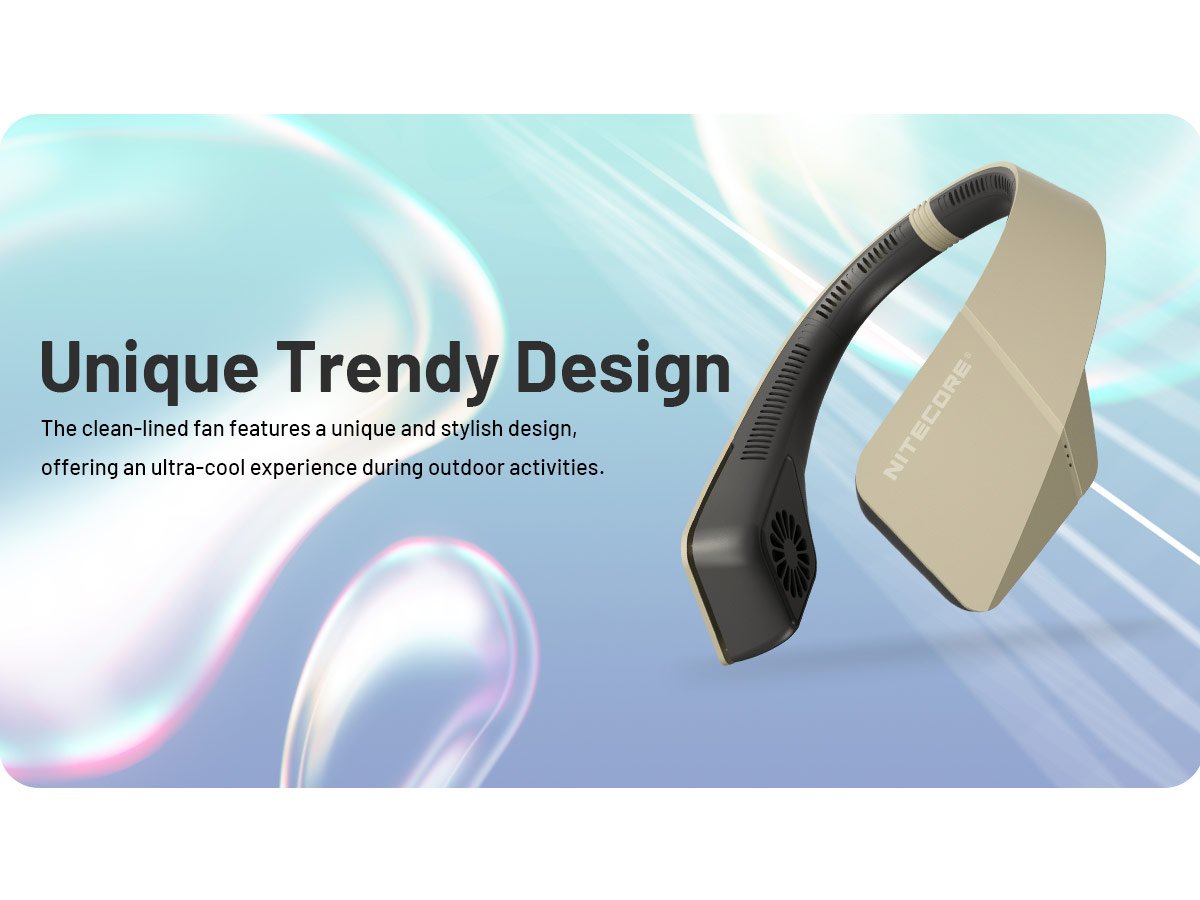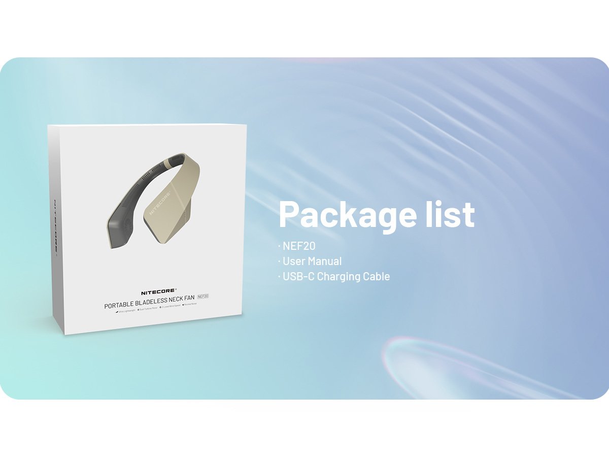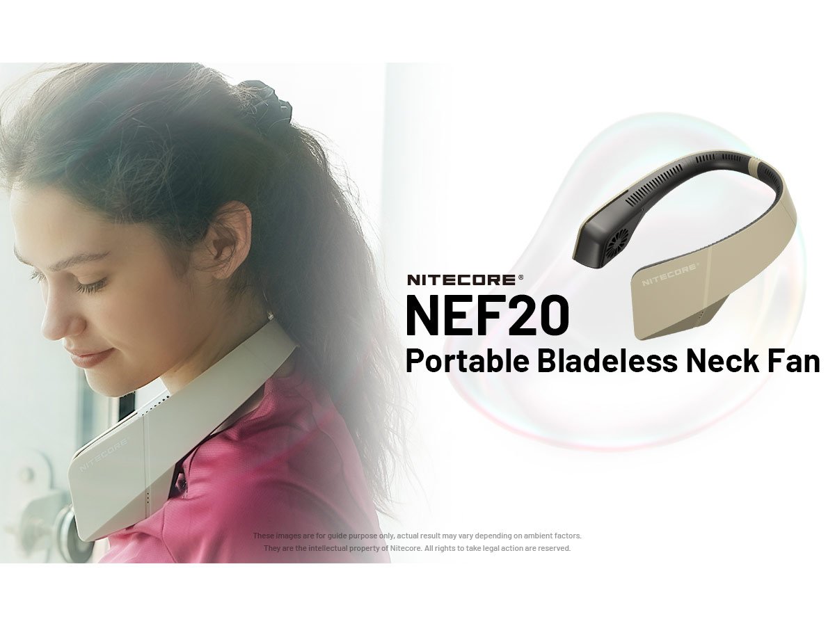 The Nitecore NEF20 is a bladeless fan worn around the neck, providing the wearer with 360° of reliable, adjustable cooling. The light weight under 11 ounces makes it easy to wear this EDC accessory to the office or outdoors to supply air circulation that will help you keep cool. Thanks to its ergonomic design and flexibility, the NEF20 is comfortable to wear day-to-day. With its position next to the ears, the NEF20 is also thoughtfully designed to be quiet in functioning, with a minimal 47dB sound signature.