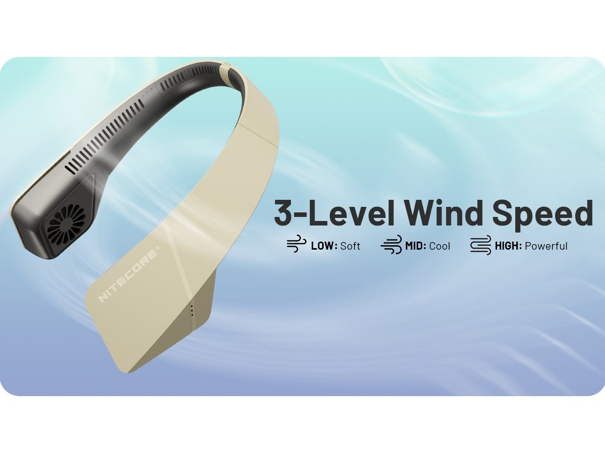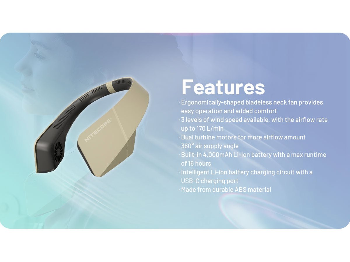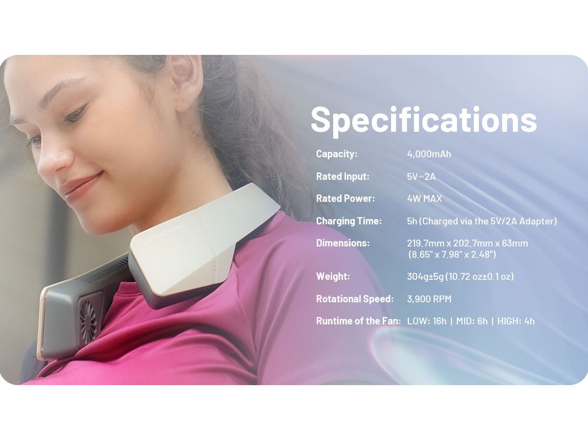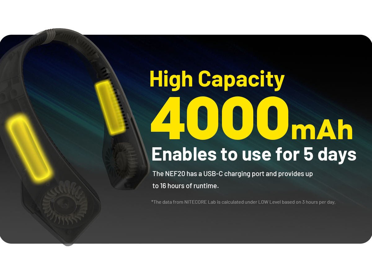 Nitecore NEF20 USB-C Rechargeable Neck Fan - Uses Built-in 4000mAh Li-ion Battery Pack