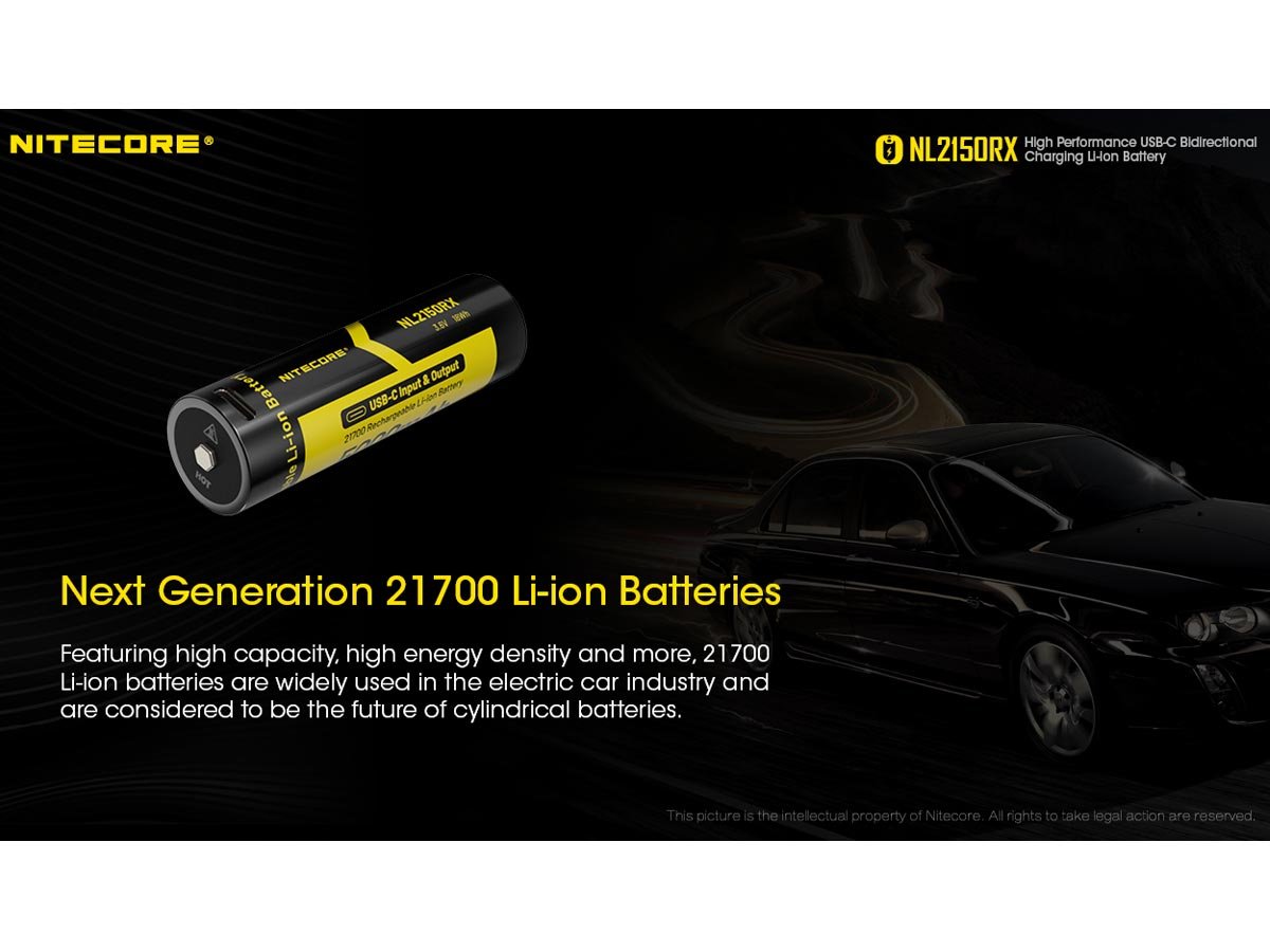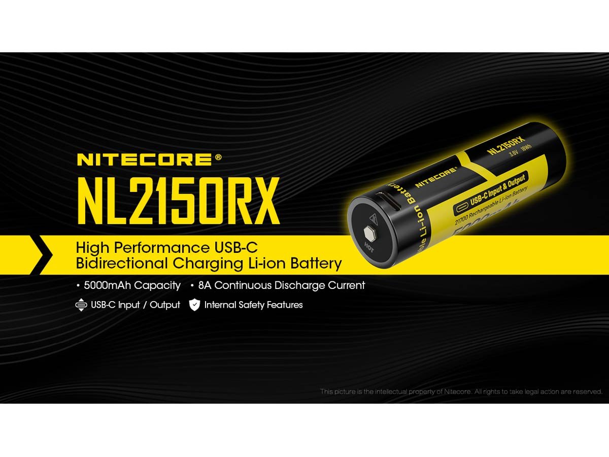 Nitecore NL2150RX 21700 5000mAh 3.6V Protected Lithium Ion (Li-ion) Button Top Battery with Built In USB-C Charging Port