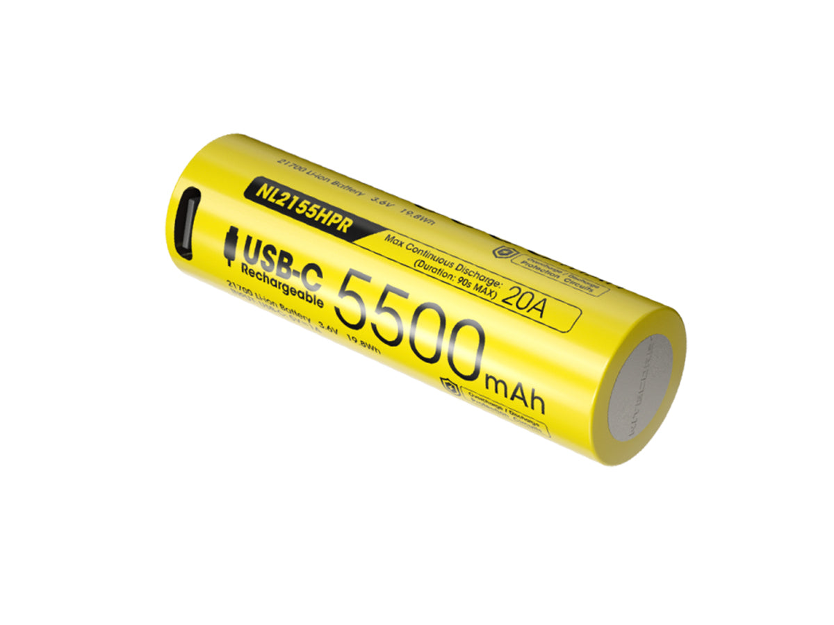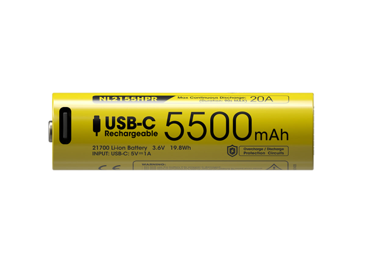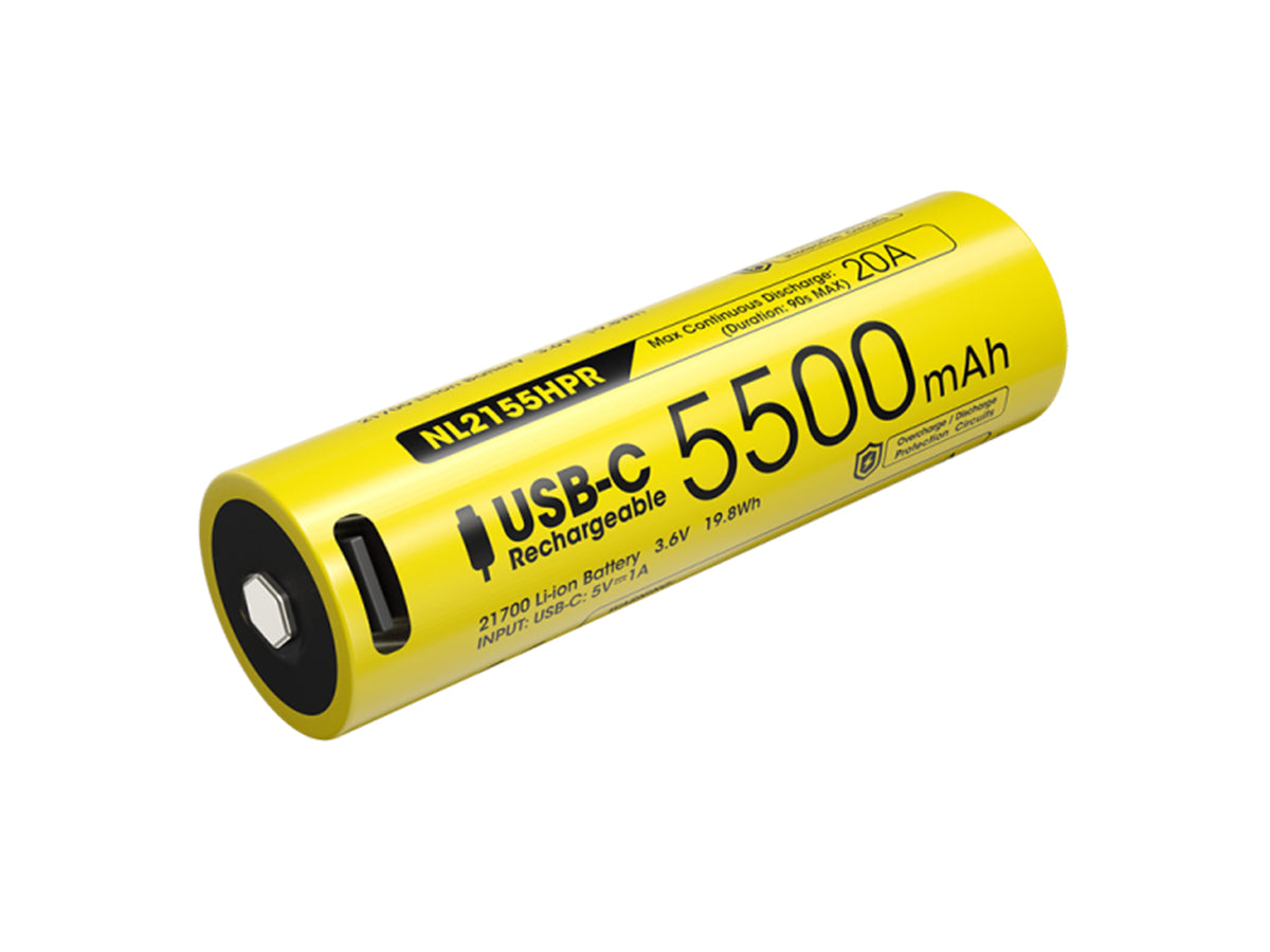 Nitecore NL2155HPR 21700 5500mAh 3.6V 20A High Drain Protected Lithium Ion (Li-ion) Button Top Battery with Built-in USB-C Charging Port