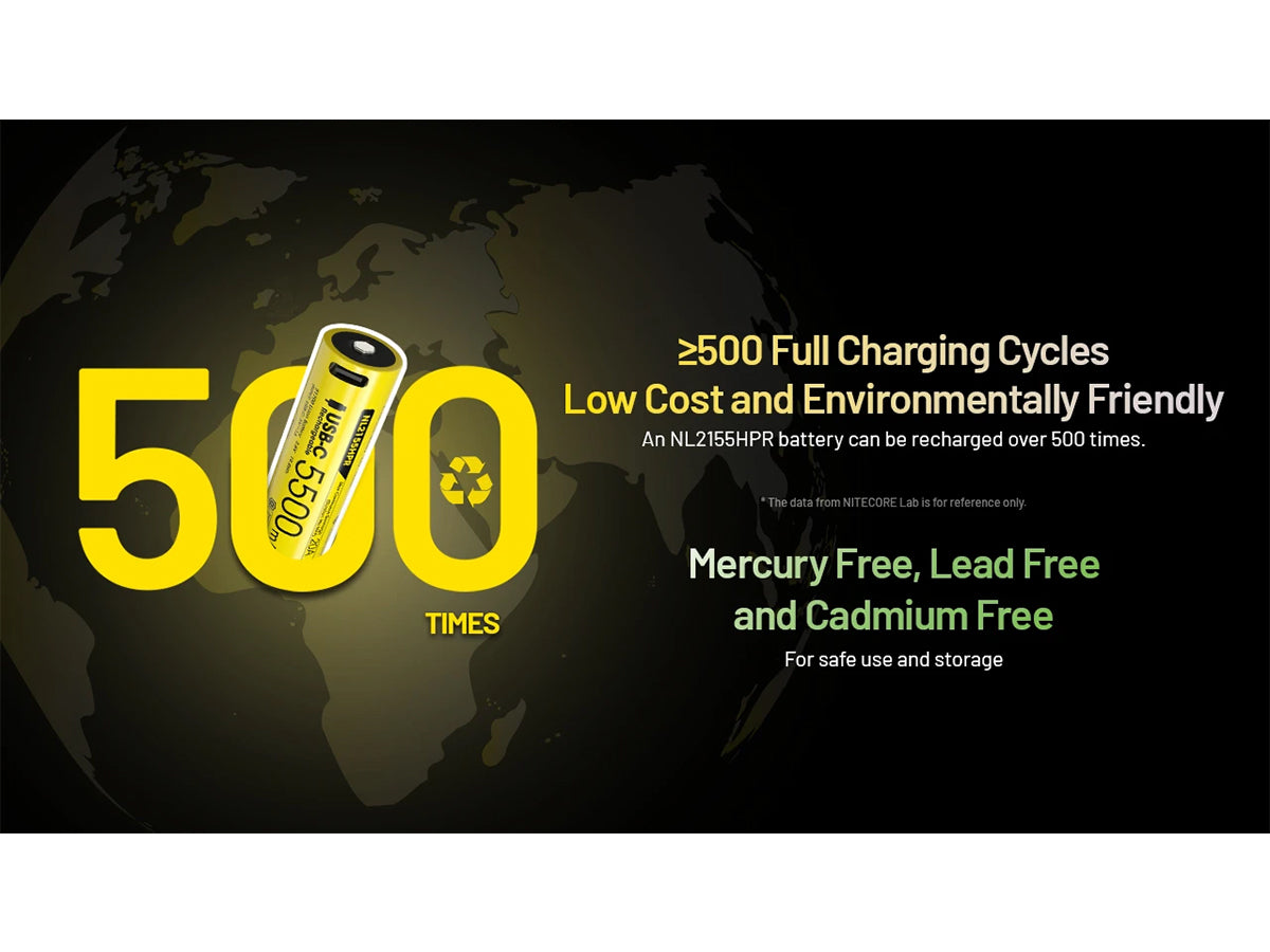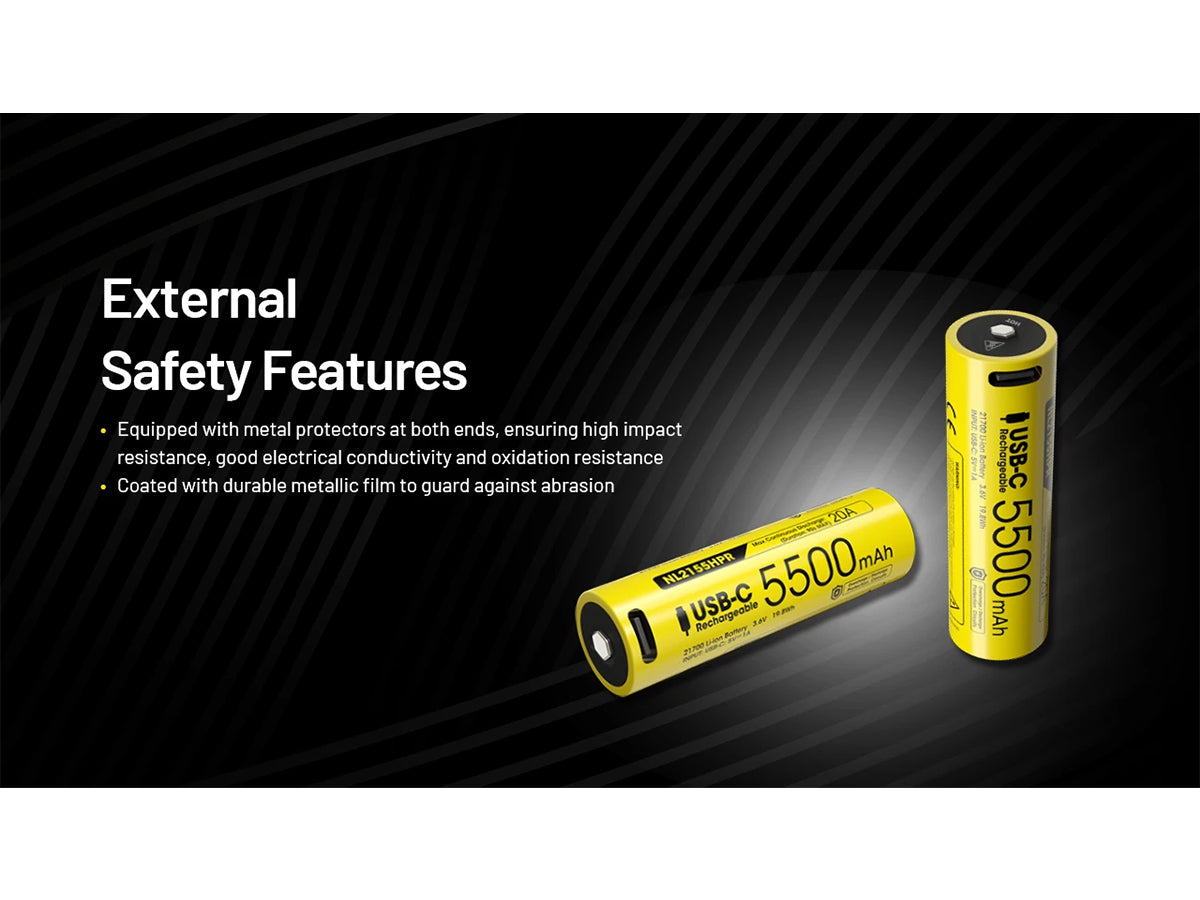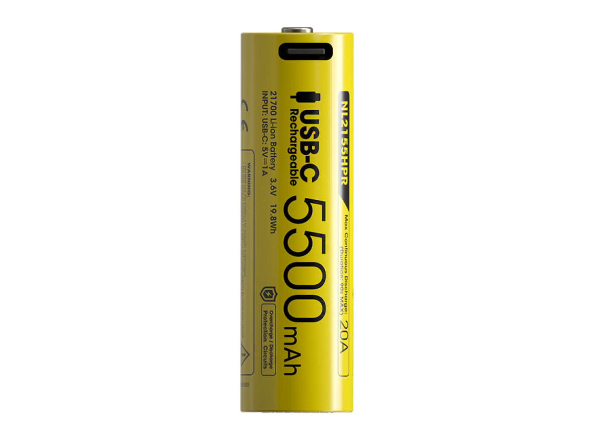 Nitecore NL2155HPR 21700 5500mAh 3.6V 20A High Drain Protected Lithium Ion (Li-ion) Button Top Battery with Built-in USB-C Charging Port