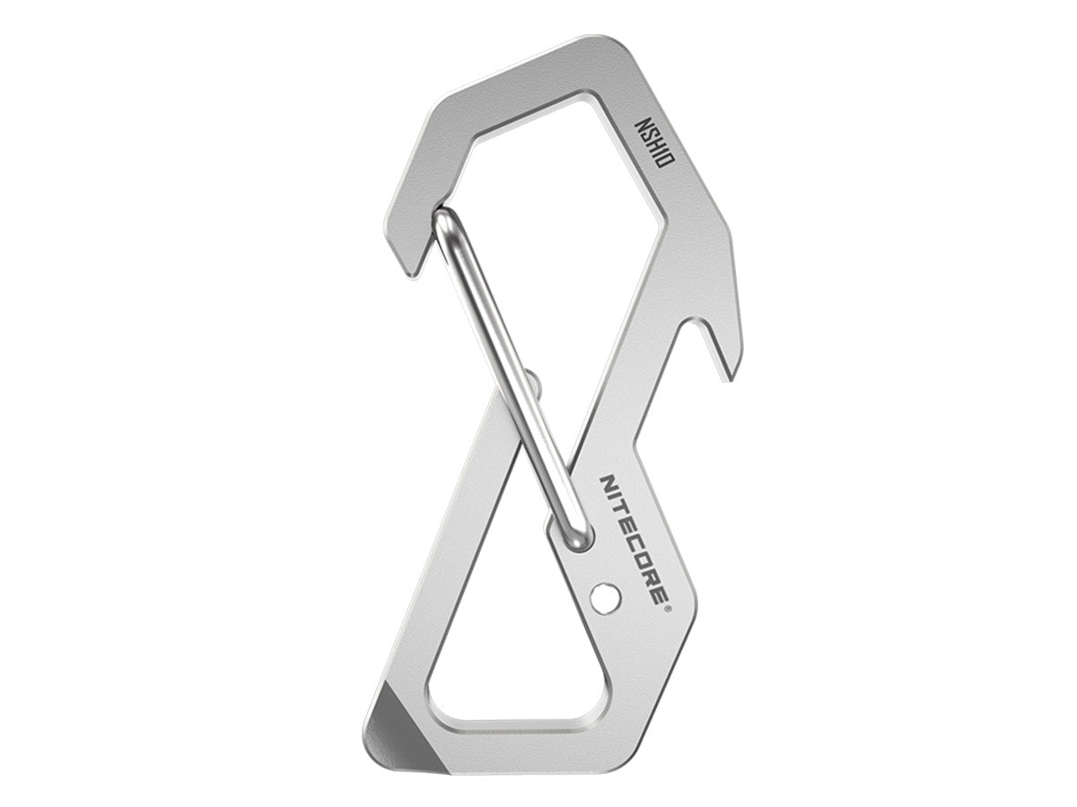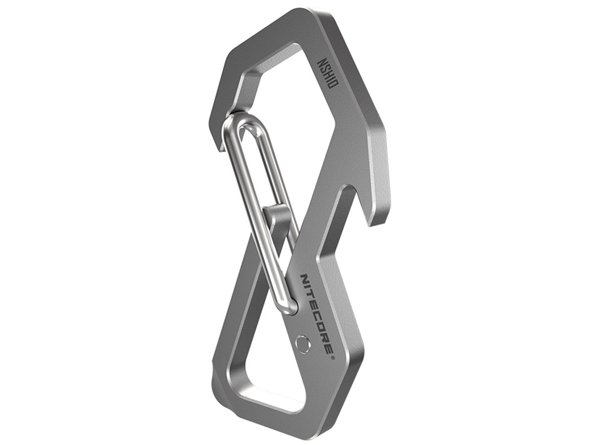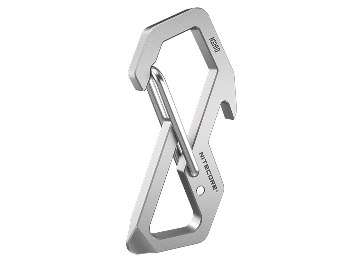 The Nitecore NSH10 is a high strength, titanium snap hook that's great for holding together keys, key FOBs, keychain lights, and more. Made from a corrosion-resistant titanium alloy, the NSH10 is ultra-lightweight and made from premium quality titanium in order to provide the best performance possible. The Nitecore NSH10 can be used for a variety of applications including use as a carabiner for tightening rope while climbing or use it for your keychain, as a bottle opener, or even as a flathead screwdriver!