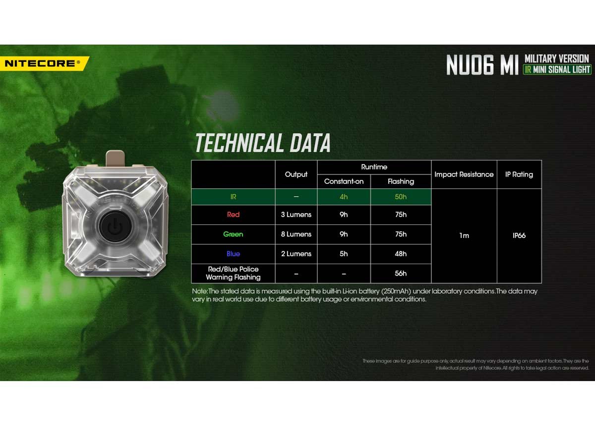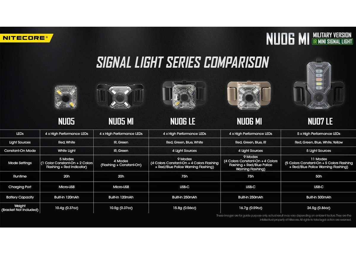 Nitecore NU06 MI IR Mini Signal Light - IR, Green, Red and Blue LED - Uses Built-in 250mAh Li-ion Battery Pack