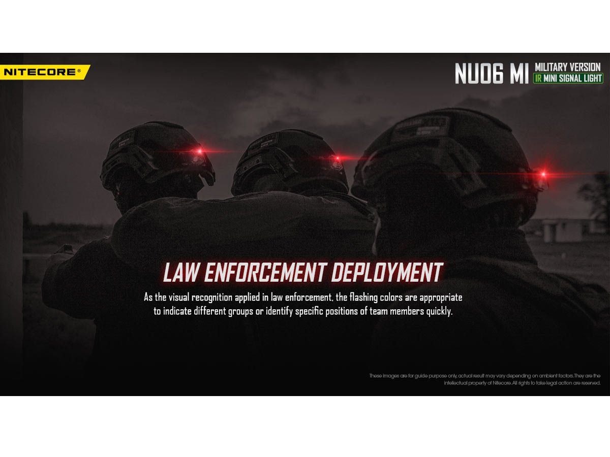 Make sure your teammates can find you while you're out on a mission with the Nitecore NU06 MI! With red, green, and blue LEDs, you can efficiently signal your location to others, even in low visibility conditions. If you're in law enforcement, the Red/Blue Police flashing mode is perfect for nightly patrols. Its single button interface enables one-handed operation, letting you stay focused on task. The clear body lets the LEDs shine in 180°, ensuring your friends can locate you from any direction.