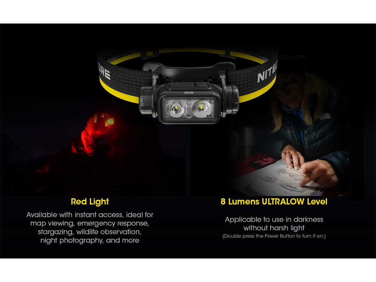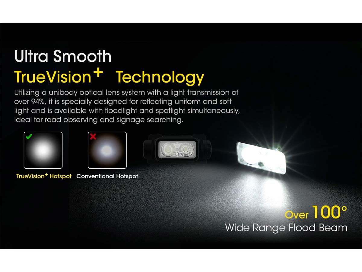 Access up to 1,000 lumens at the touch of a button with the NU40 headlamp by Nitecore! The NU40 provides comfortable, hands-free lighting that covers 100º of area around you in a soft, expansive beam. Thanks to Ultra-Smooth TrueVision+ Technology and a unibody optical lens system, this floodlight can reach up to 327 feet away, providing extensive illumination on job sites, roadside emergencies, or evening hikes.