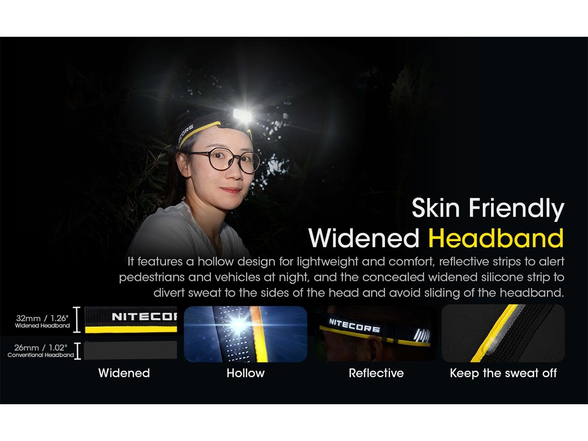 - » Comfortable headband features a reflective strip for increased visibility and safety