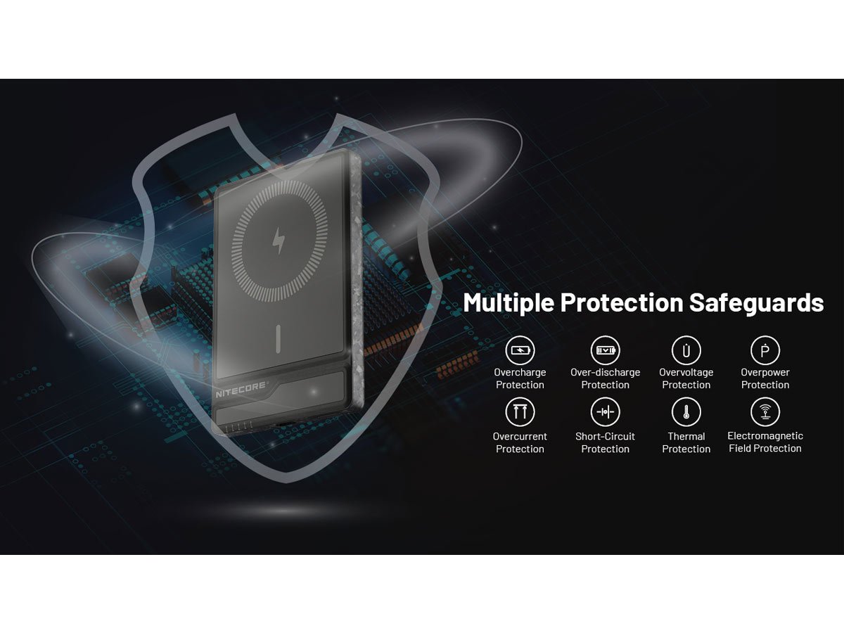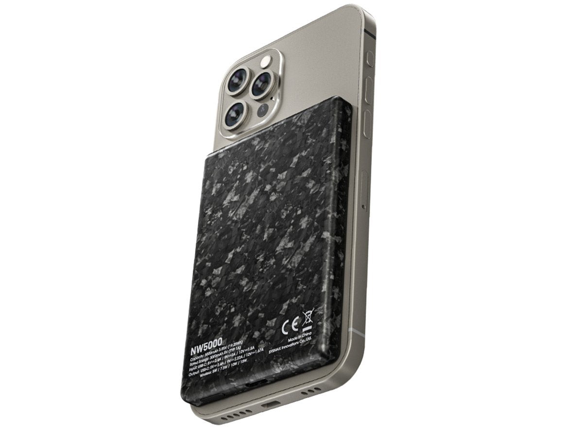 The NW5000's forged carbon fiber shell protects against water, corrosion, as well as general wear and tear. For a safe user experience, and to protect your phone, this power bank is designed with eight protections: overcharge, over-discharge, overvoltage, overpower, overcurrent, short-circuit, thermal, and electromagnetic field protections.