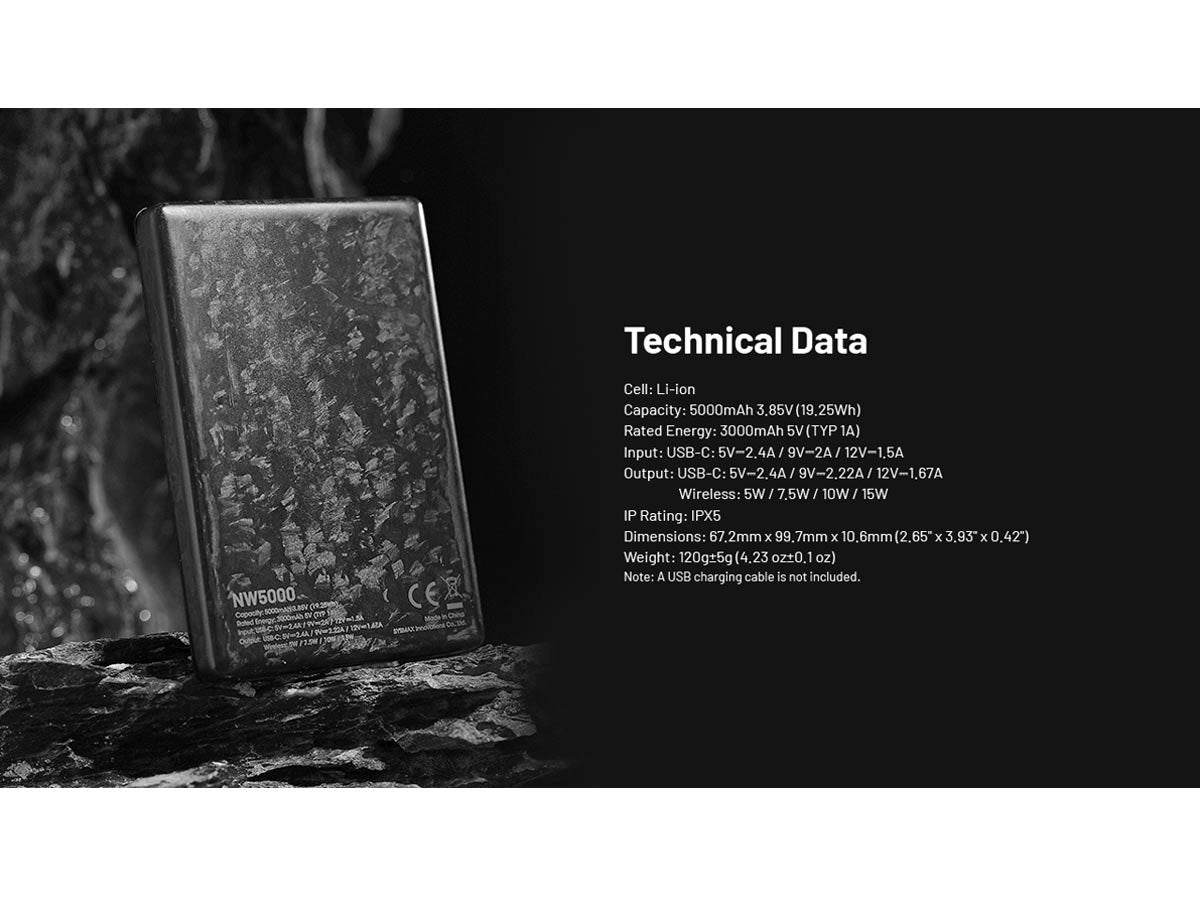 Nitecore NW5000 Carbon Fiber Magnetic Wireless 5000mAh Li-ion Power Bank