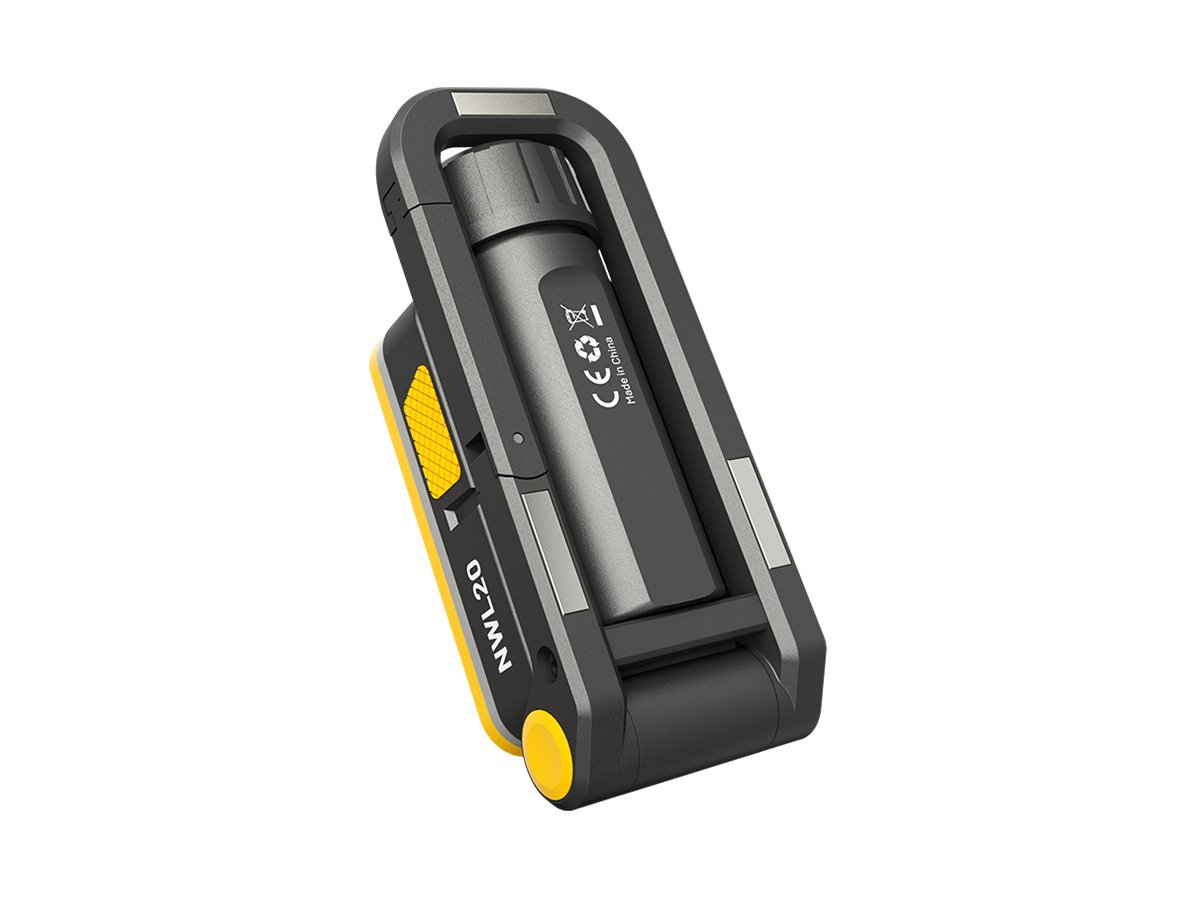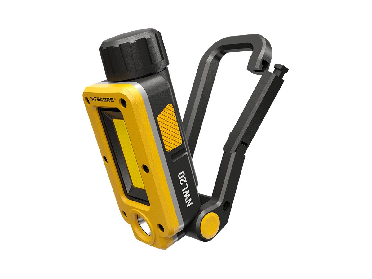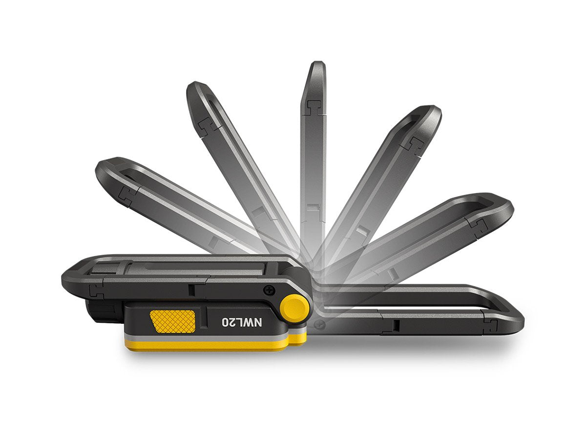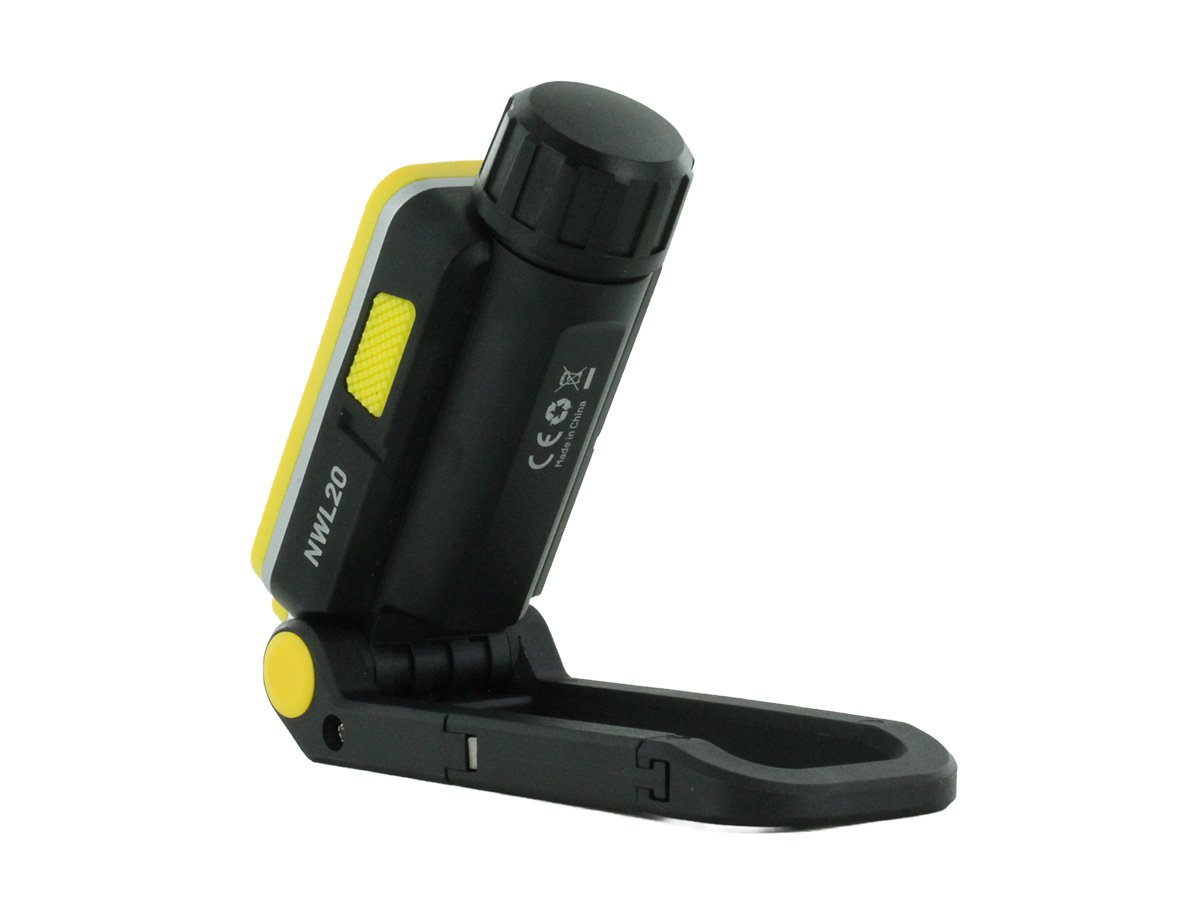 The Nitecore NWL20 is a 600-lumen worklight complete with spot and flood LEDs as well as red light capability. The light has a magnetic base and 180 degrees of adjustability, providing extensive lighting options. In addition, the back panel opens for use as a hook to offer even more illumination solutions. These options make the NWL20 excellent for use under the car hood, at a worksite, or out camping!