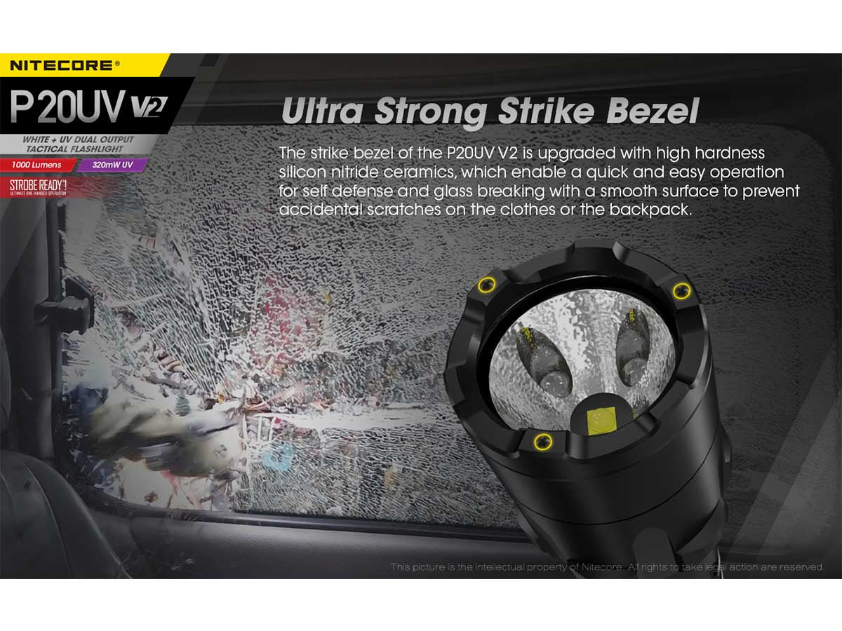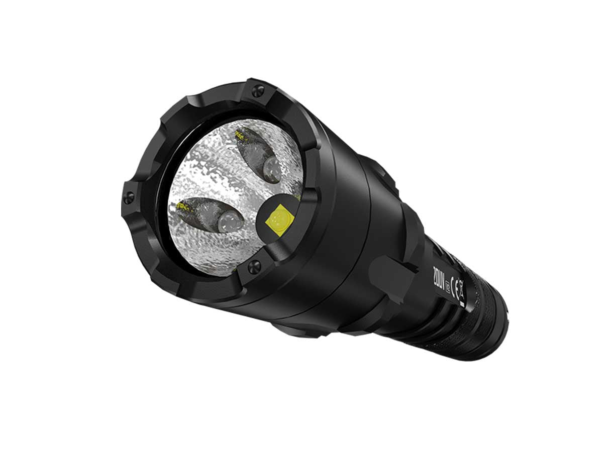The Nitecore P20UV V2 is an intensely powerful tactical LED flashlight that provides not only powerful white lighting but a high utility ultraviolet beam as well. Reaching up to 1000 lumens and a beam distance of over 160 meters, this flashlight is well within the ranks of the best and brightest tactical style lights on the market. Its 320mW ultraviolet mode is nothing to shrug off either, capable of revealing flourescent materials on clothing, currency and documents. Paired with an orange peel reflector that helps emit a wide and floody beam, the P20UV V2 can ensure that nothing escapes your sights.
