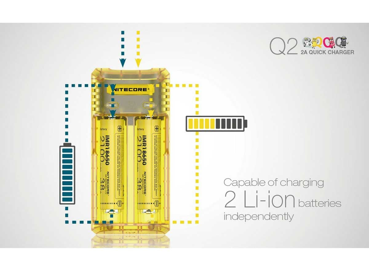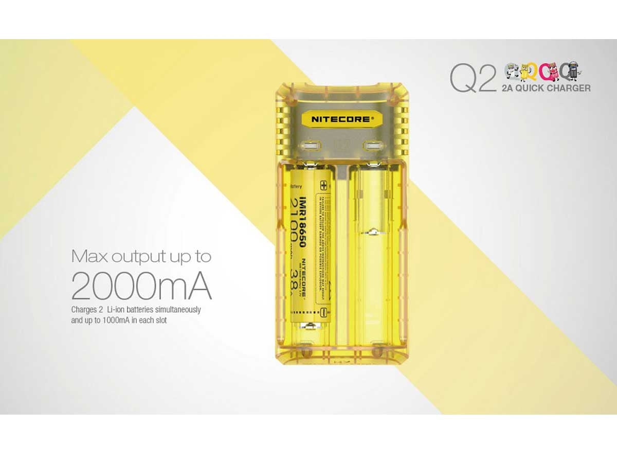 Nitecore Q2 2-Bay Quick Charger for Li-Ion, IMR Batteries - Comes in a Variety of Colors