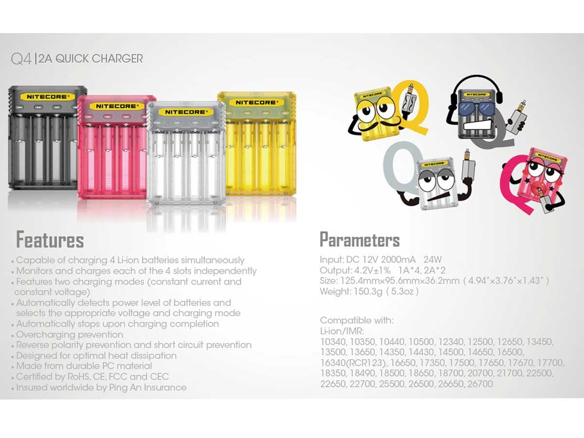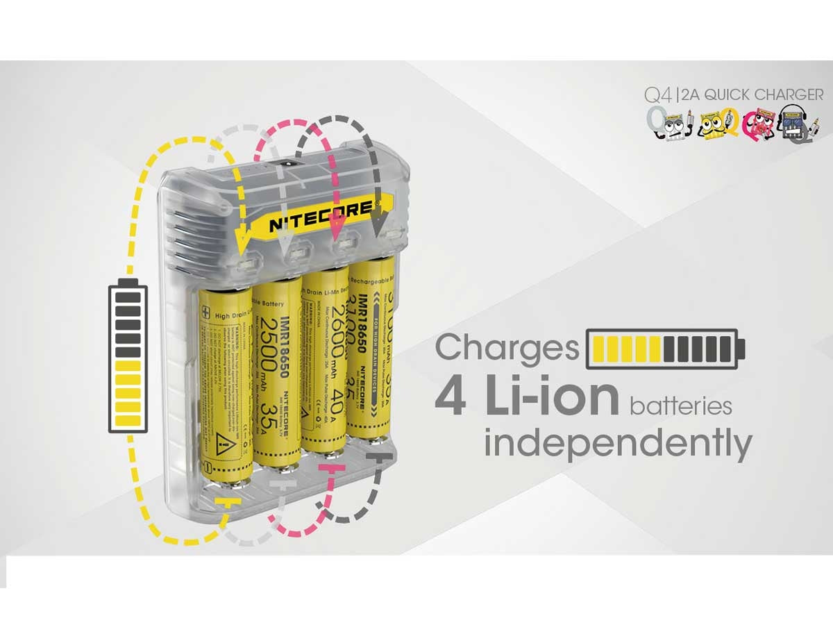 Nitecore Q4 4-Bay Quick Charger for Li-Ion, IMR Batteries - Comes in a Variety of Colors