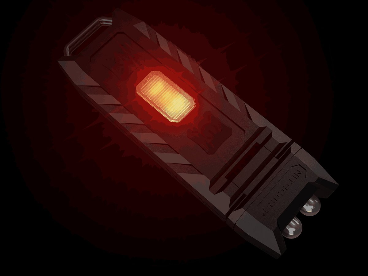 Never used a red light before? You won't believe the difference. Red light is gentler on our eyes than white, making it great for situations where you want to preserve your night vision. Night photography, astronomy, wildlife observation & tracking, stealth operations, and emergency response are all circumstances where red light excels. The red light is located on the body of the Thumb.