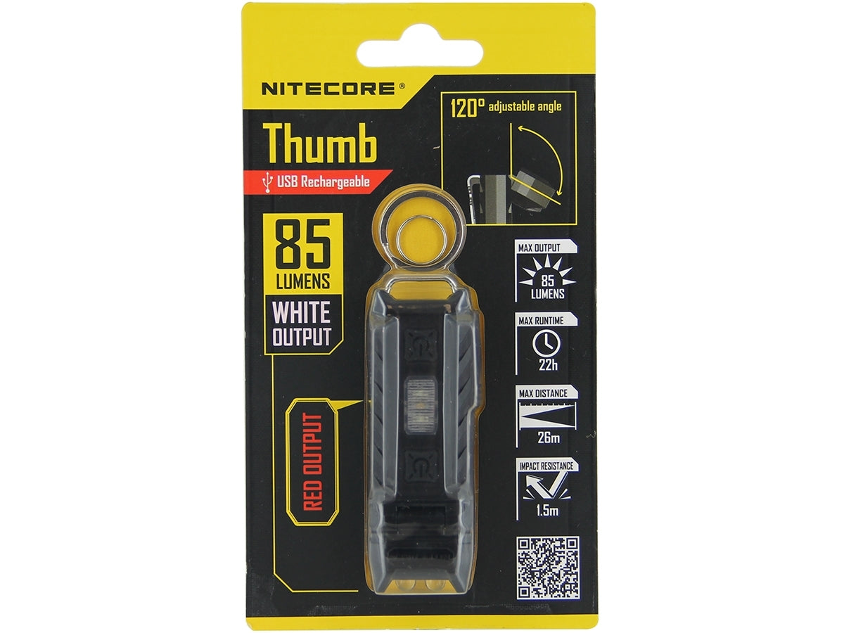 The ideal worklight is one you don't have to hold. Nitecore's Thumb allows you to go hands-free and still have your light fall exactly where you need it. Clip it to your pocket, bag strap, or hat brim, and tilt the head to the perfect angle. Illuminate your hiking path, work area, or car engine. 120° of flexibility allow you to aim the 85 lumen beam wherever you want it. Adjust your output with three different light levels. Both the red and white LEDs also feature a flashing mode in case you need an ID beacon. Recharge the thumb with any USB micro cable (the same connector used for most smartphones). The embedded charge indicator is red while charging, and turns green when your battery is full again.